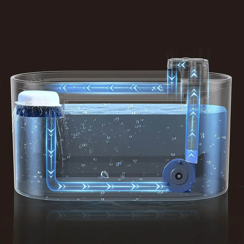 Tento model je navrhnutý s ohľadom na maximálne pohodlie a úsporu energie. Tichý chod fontány neruší pokoj domova, zatiaľ čo bezpečné USB napájanie s nízkou spotrebou energie šetrí vaše náklady. Zabudované LED osvetlenie navyše dodáva praktický prvok, vďaka ktorému je fontána ľahko viditeľná aj v noci a uľahčuje vašim maznáčikom nájsť vodu v tme.