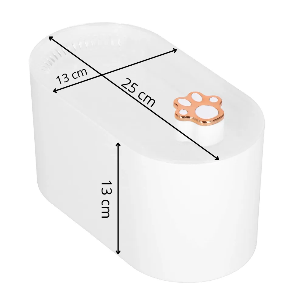 Automatická vodná fontána zaistí vašim maznáčikom neustále čerstvú vodu. Jemný tečúci prúd vody láka na pitie a vďaka 3-stupňovej filtrácii je voda vždy krištáľovo čistá. Vymeniteľný filter zaisťuje dlhodobú kvalitu vody. Fontána pracuje veľmi ticho, má bezpečné USB napájanie s nízkou spotrebou energie a úsporné LED osvetlenie pre ľahkú orientáciu v tme. Certifikácia IPX8 a 4 prísavky zaručujú bezpečné a stabilné umiestnenie.
