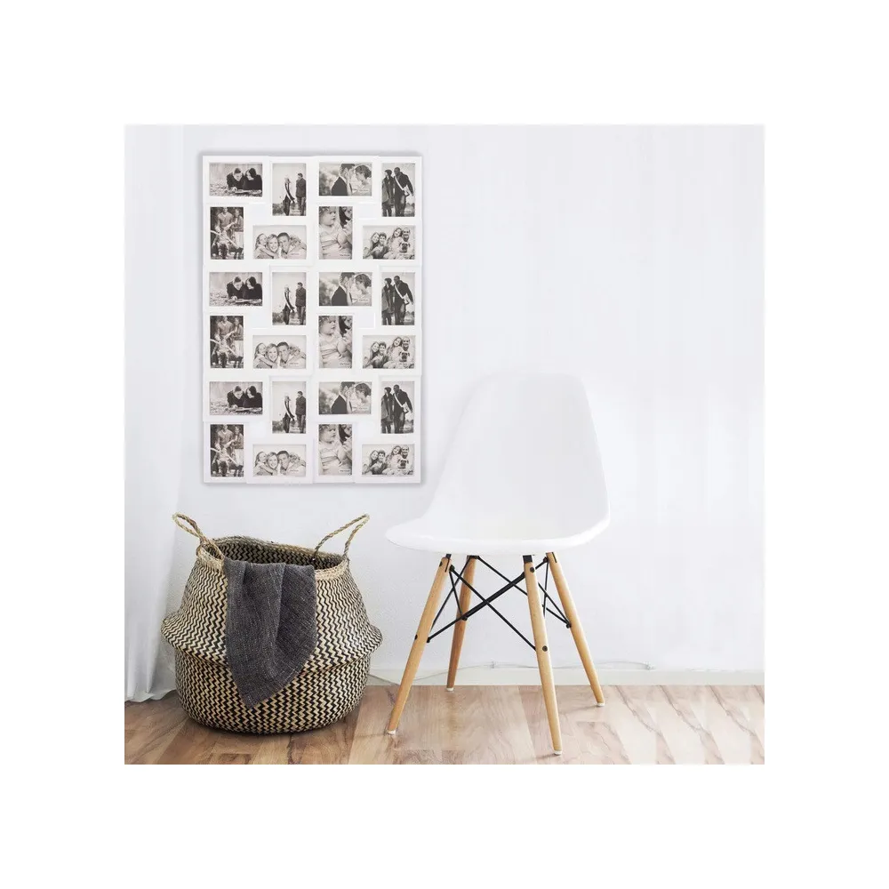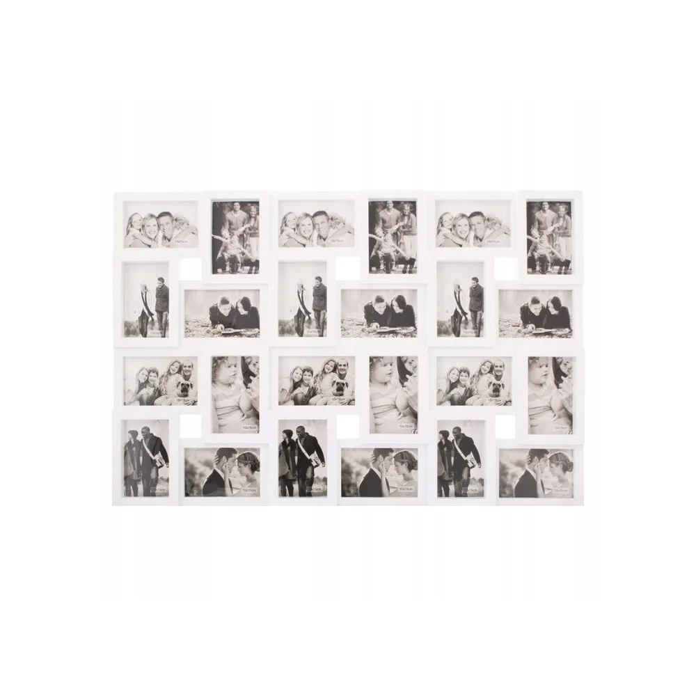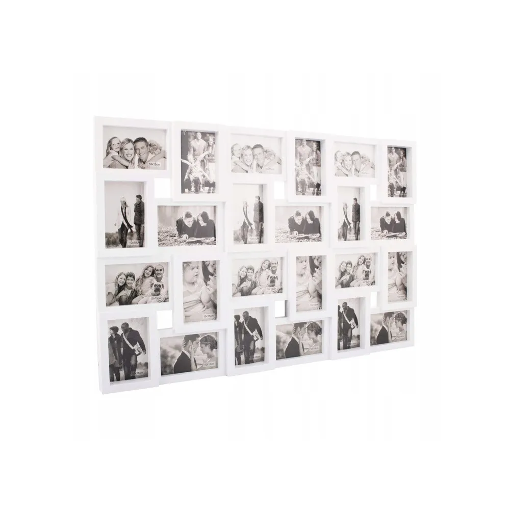 Nástenný rámček pre 24 fotografií vo formáte 10x15 cm. Možnosť zvislého alebo vodorovného uchytenia na stenu. Veľmi ľahké, napriek tomu odolné prevedenie, pútavý vzhľad. Celkové rozmery 86x57 cm.