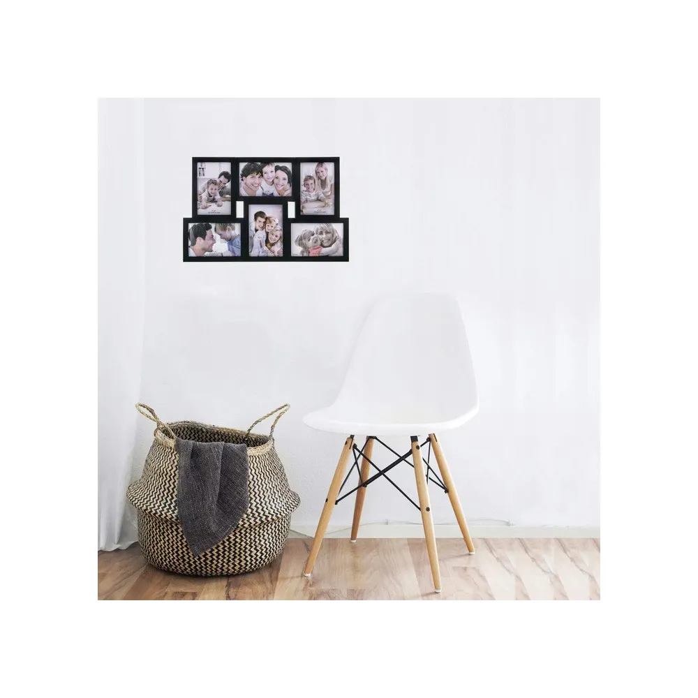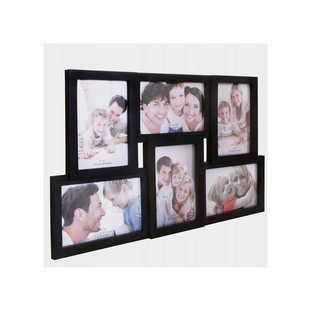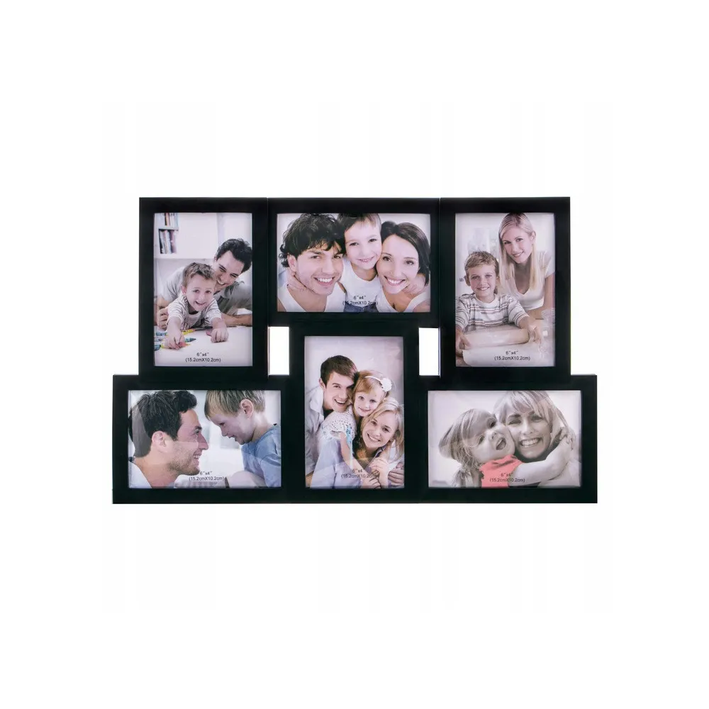 Nástenný rámček pre 6 fotografií vo formáte 10x15 cm . Vodorovné uchytenie na stenu, ľahká výmena fotografií. Veľmi ľahké, napriek tomu odolné prevedenie, pútavý vzhľad. Celkové rozmery 44x28 cm.