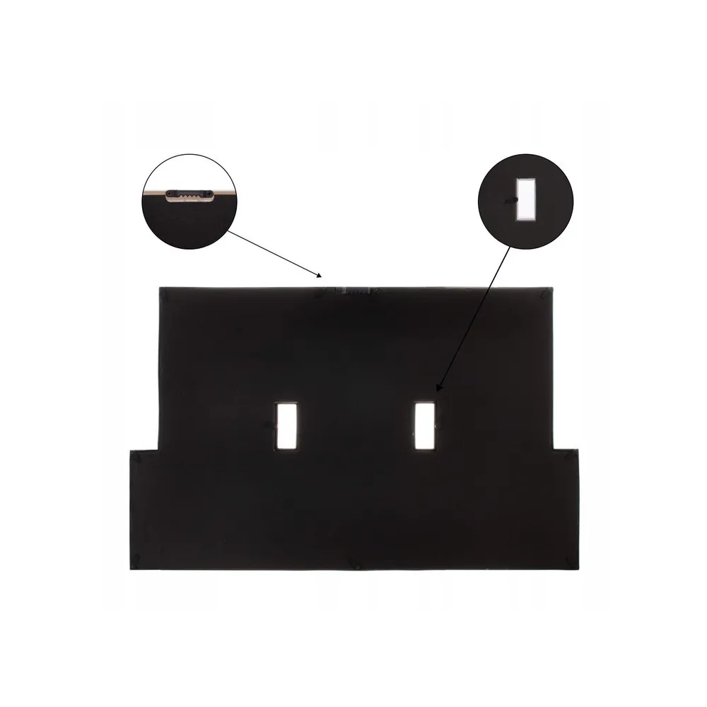 Multirámik je vyrobený z tvrdeného plastu a tvorí kompaktný celok pre 6 fotografií v obľúbenom formáte 10x15 cm. Fotografie sa vkladajú po odklopení zadného panelu, z prednej časti sú chránené bezpečnostným plexisklom. Výhodou rámčeka sú zabudované závesy na vodorovné uchytenie na stenu.
