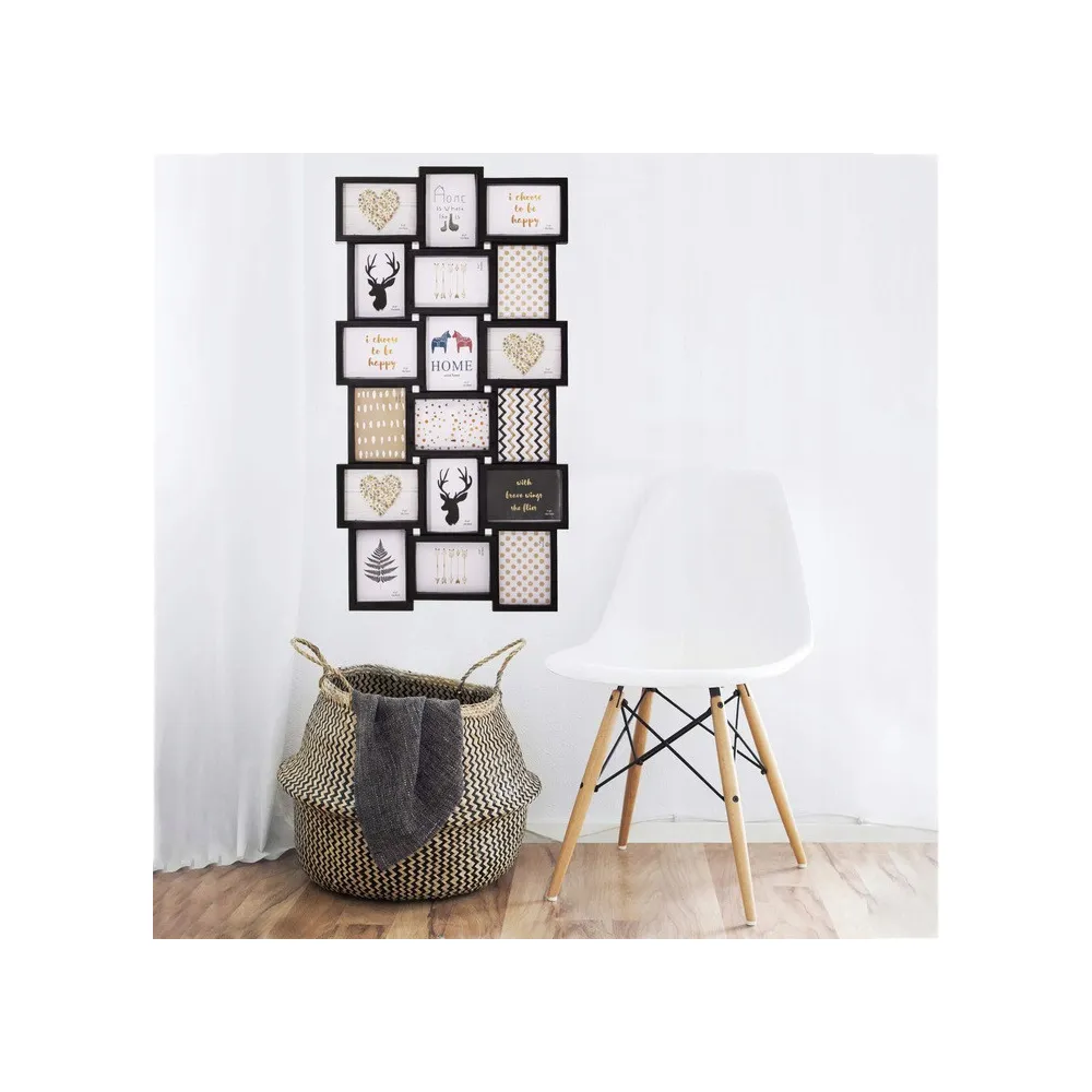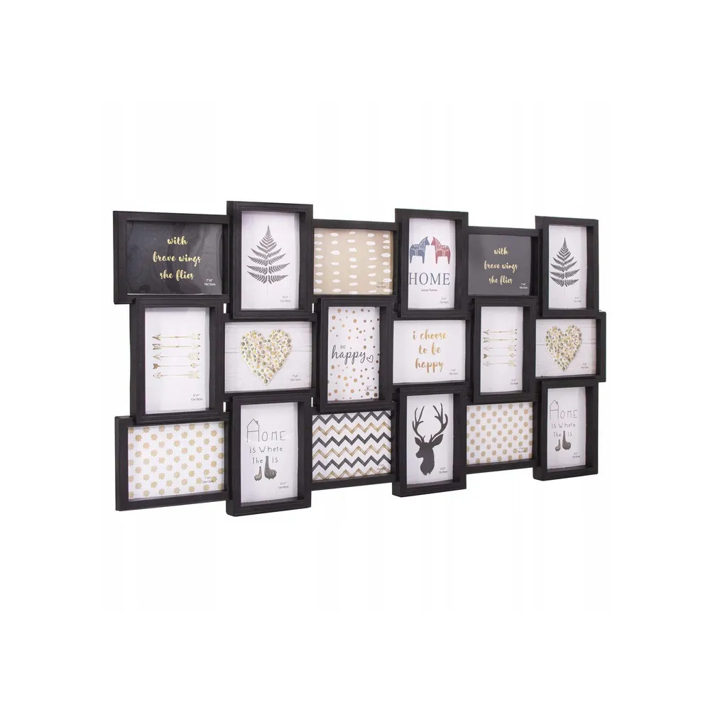 Nástenný rámček pre 18 fotografií vo formáte 13x18 cm. Vodorovné aj zvislé uchytenie na stenu, ľahká výmena fotografií. Veľmi ľahké, napriek tomu odolné prevedenie, pútavý vzhľad. Celkové rozmery 101x52 cm.