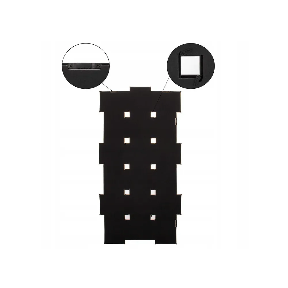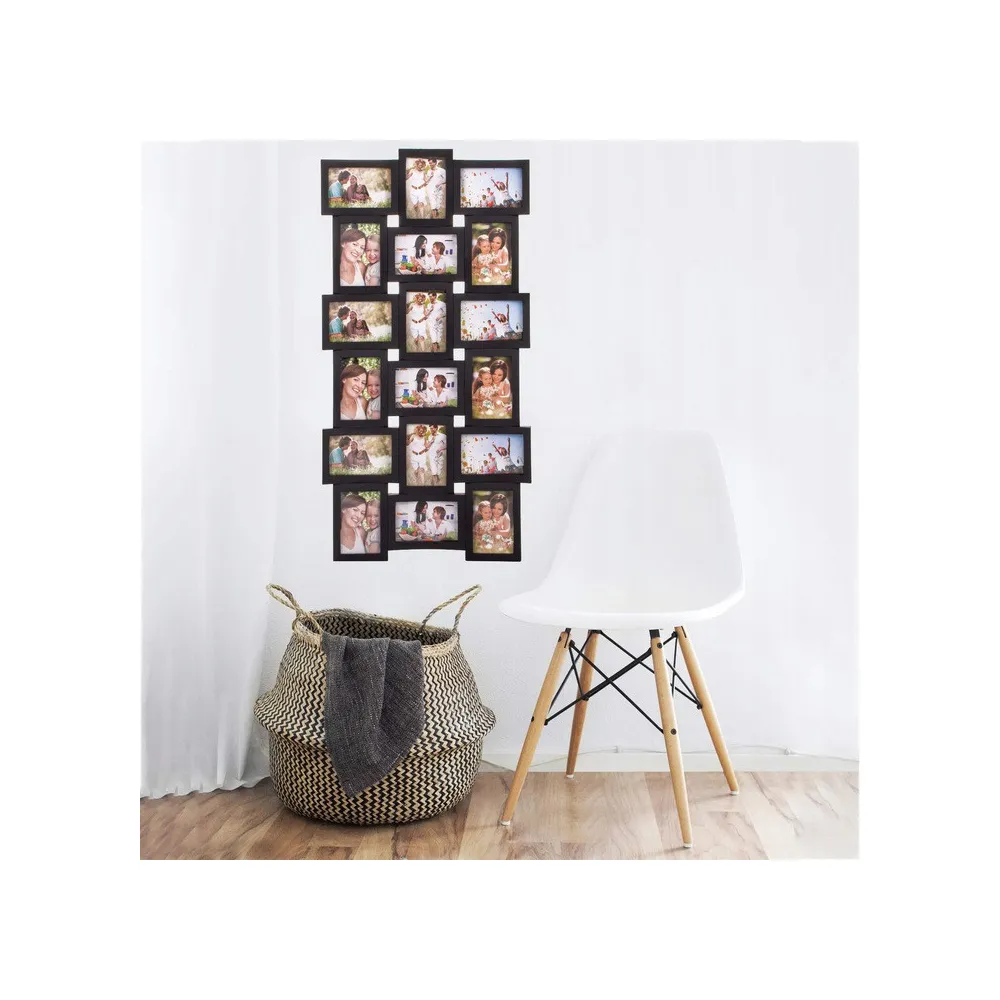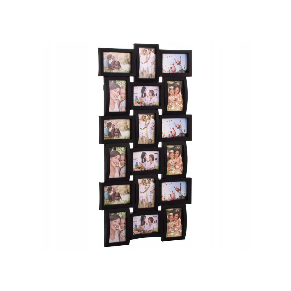 Nástenný rámček pre 18 fotografií vo formáte 10x15 cm . Vodorovné aj zvislé uchytenie na stenu, ľahká výmena fotografií. Veľmi ľahké, napriek tomu odolné prevedenie, pútavý vzhľad. Celkové rozmery 93x47 cm.