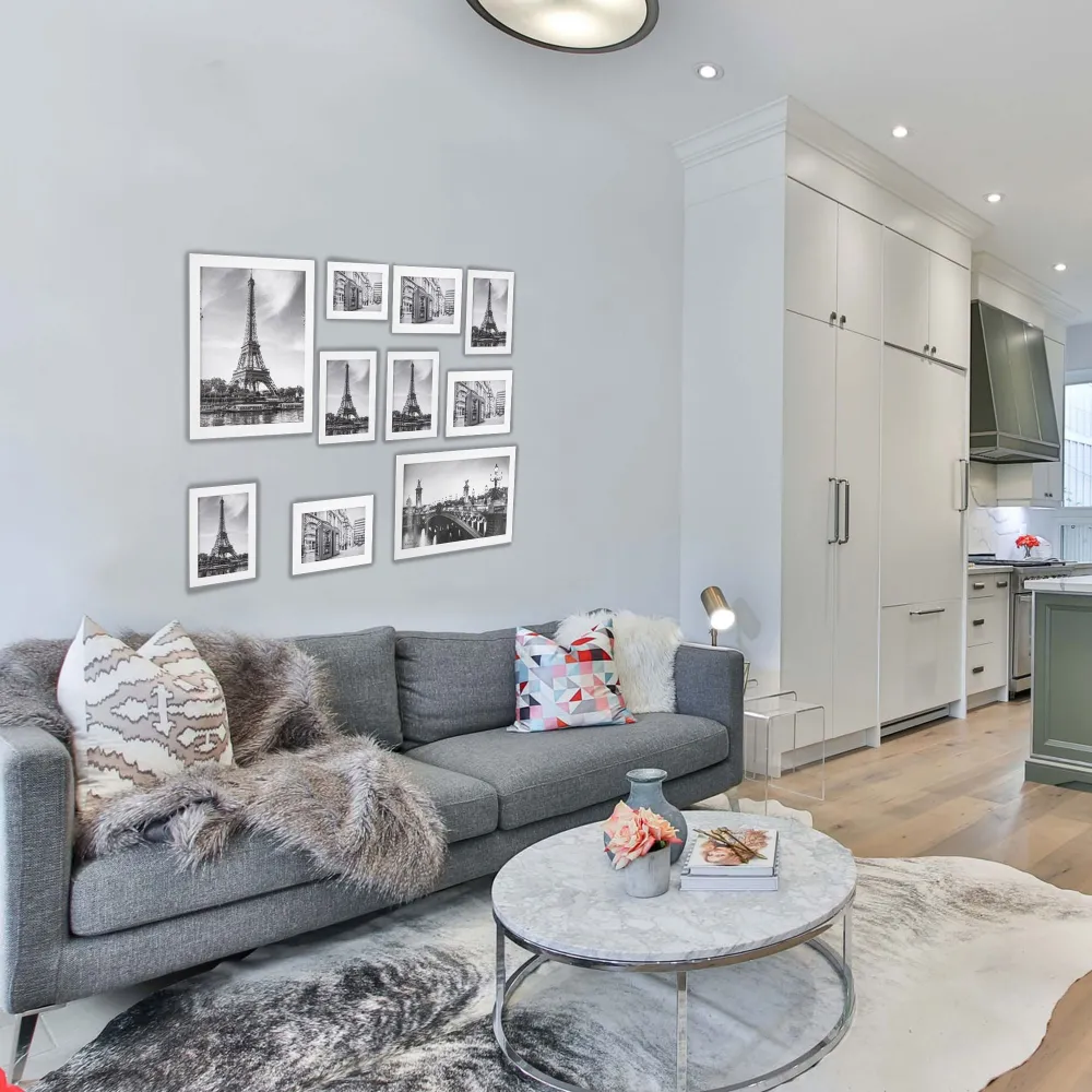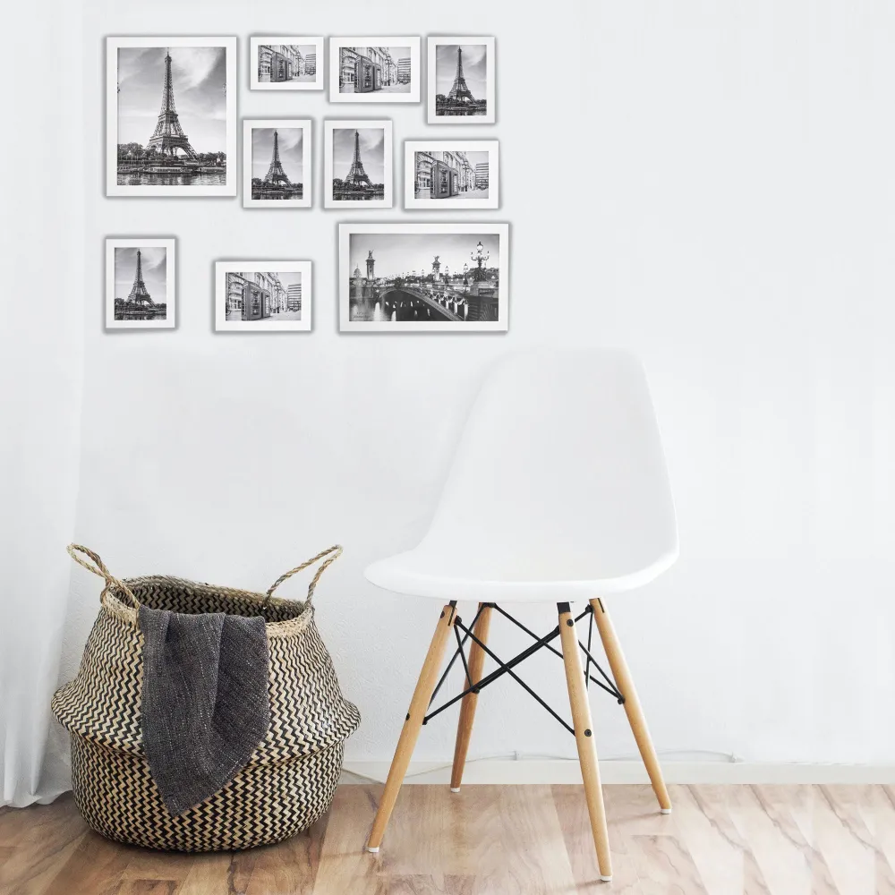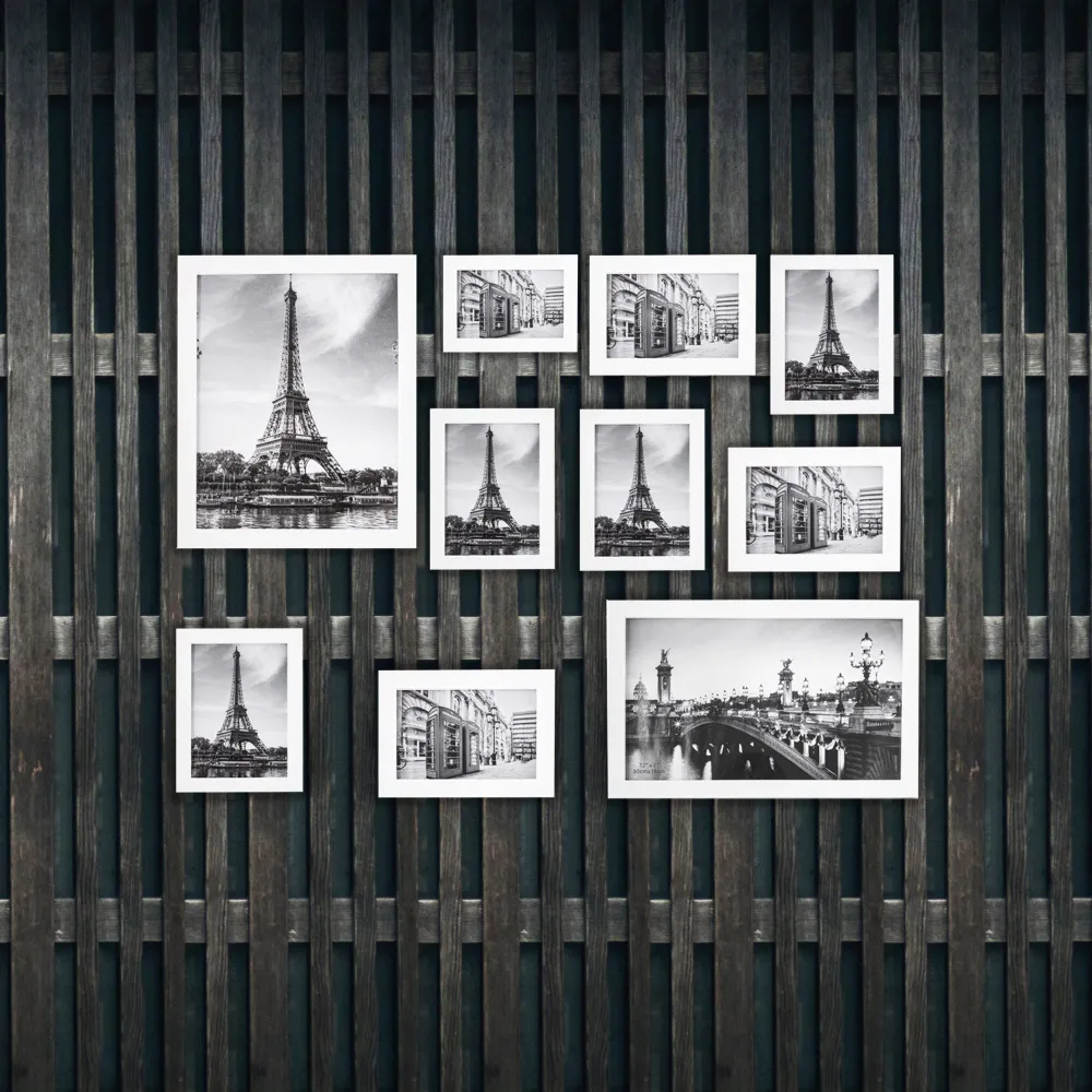 Sada fotorámikov skvele doplní váš interiér . Rôzne veľkosti vám umožnia usporiadanie podľa vlastného výberu. Fotorámiky sú vybavené háčikom , môžete ich navyše zavesiť horizontálne aj vertikálne . Dekoratívny prvok v modernom dizajne pojme na 12 fotografií . Môžete tak vytvoriť jedinečnú kompozíciu , ktorá bude uchovávať vaše spomienky po dlhé roky.
