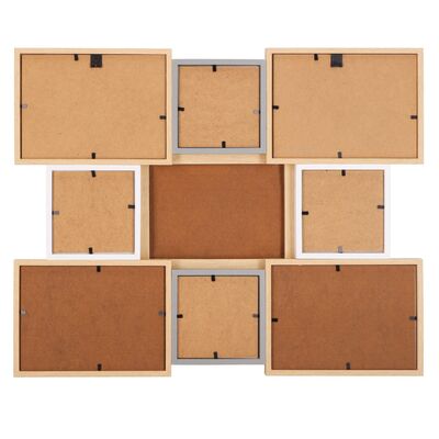 Štýlový fotorámik v imitácii svetlého dreva, do ktorého ľahko umiestnite 9 fotografií formátu 13x18 a 10x10 cm. Fotografie sa v ňom elegantne naaranžujú tak, aby pôsobili úhľadne a atraktívne. Vďaka jednoduchému systému vloženia zo zadnej strany a praktickým úchytom na vodorovné zavesenie sa stane ideálnym doplnkom každého interiéru.