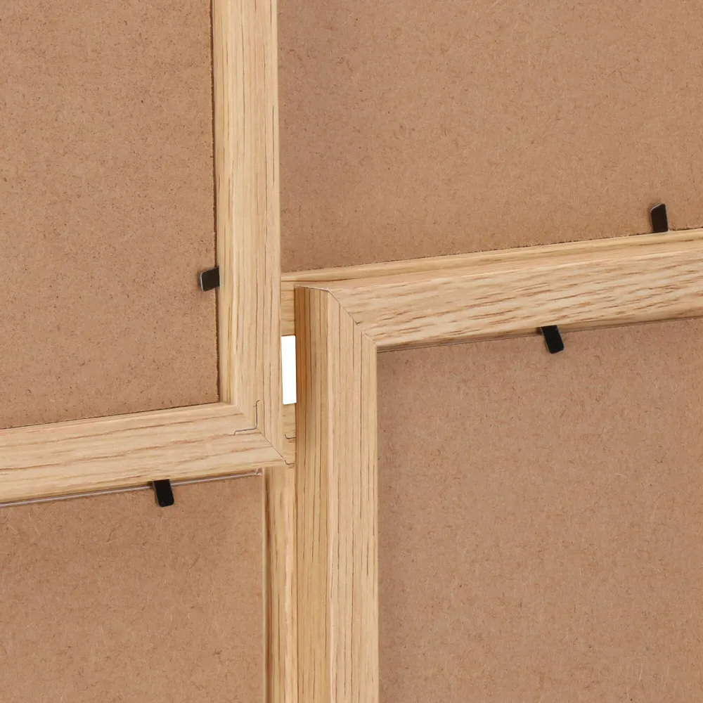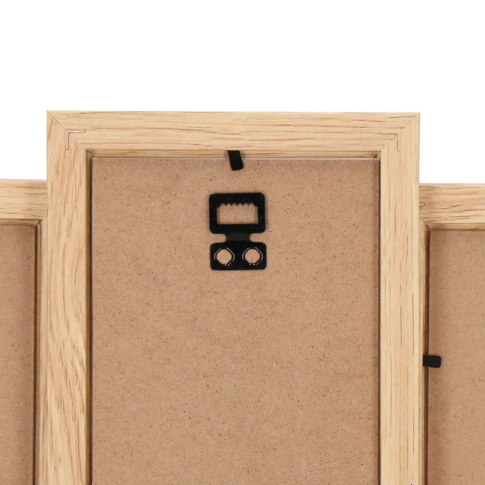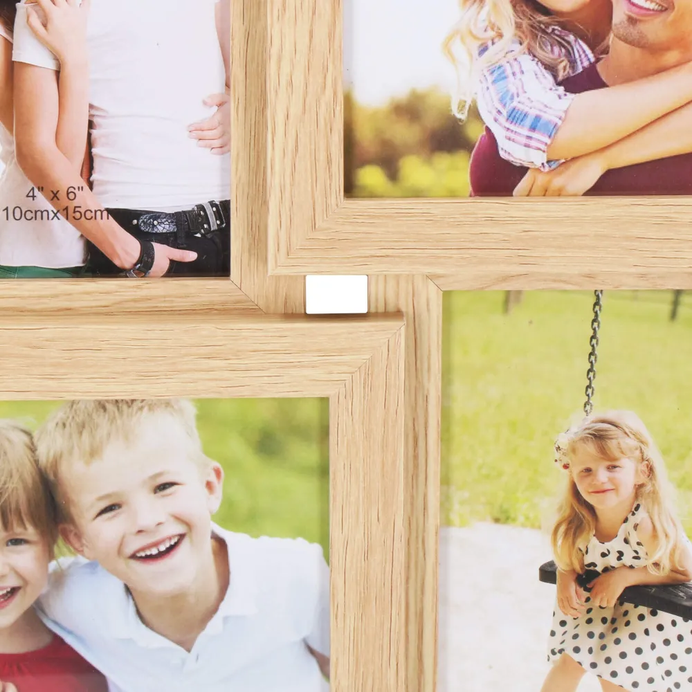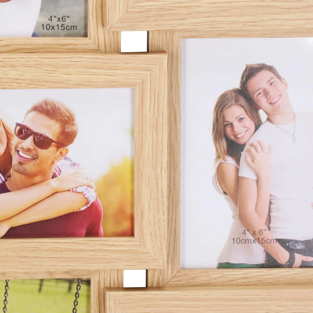 Štýlový fotorámik v imitácii svetlého dreva, do ktorého ľahko umiestnite 12 fotografií formátu 15x10 cm v kombinácii na výšku aj na šírku. Fotografie sa v ňom elegantne naaranžujú tak, aby pôsobili úhľadne a atraktívne. Vďaka jednoduchému systému vloženia zo zadnej strany a praktickým úchytom na vodorovné zavesenie sa stane ideálnym doplnkom každého interiéru.