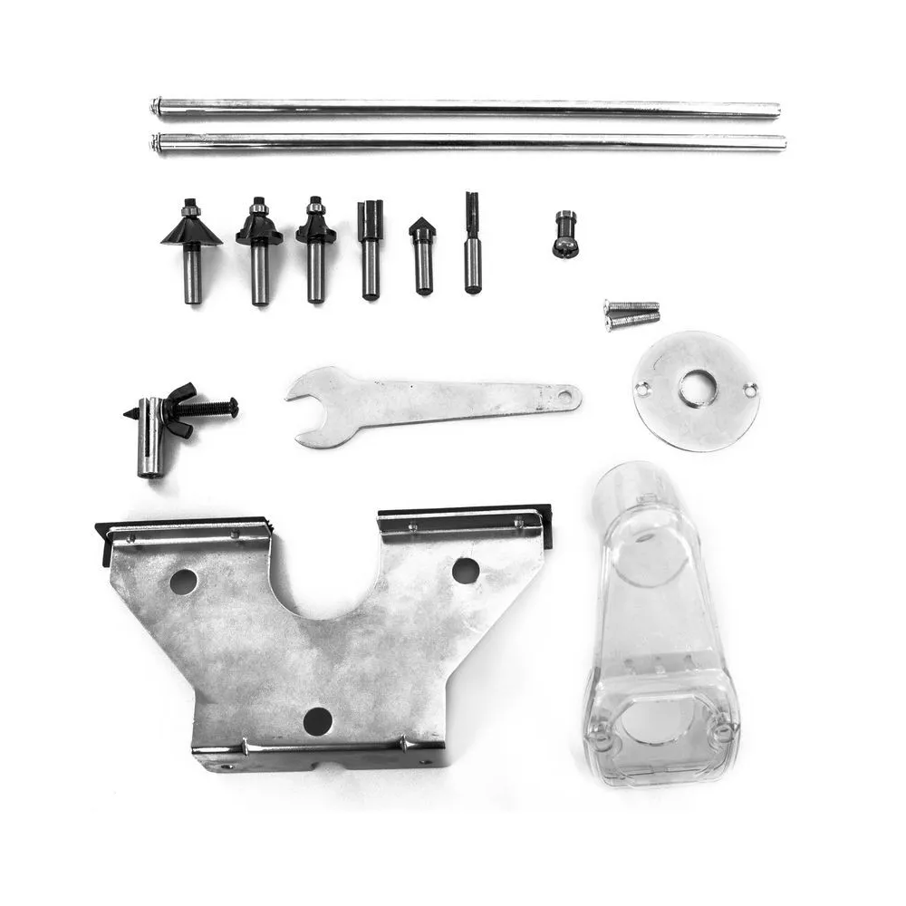 Vrchná fréza na opracovanie rôznych druhov dreva s plynulou reguláciou otáčok pre prácu špecifickú pre daný materiál. Ergonomické rukoväte s mäkkým úchopom na bezpečnú prácu. Dvojstupňové vedenie pre presné frézovanie. Jemné nastavenie hĺbky frézovania. Sedem možností nastavenia revolverového hĺbkového dorazu. Možnosť zaistenia hĺbky frézovania pre ľahkú prácu vo zvolenej výške. Bezpečnostný vypínač zabraňuje nechcenému zapnutiu frézy. Možnosť zaistenia vretena pre jednoduchú a rýchlu výmenu frézy. Priehľadný ochranný kryt. Stojan frézy s plastovou podložkou na jednoduché posúvanie a ochranu pracovnej plochy. Prípojka pre prídavný odsávací systém, paralelný doraz, klieštiny (6/8 mm), kružítko, kopírovacia objímka, kľúč, 6 frézok.