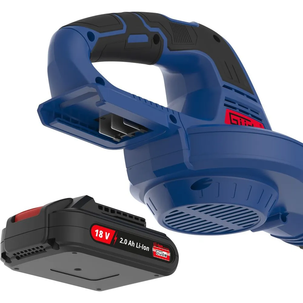 Akumulátorový fukár lístia zo série akumulátorového náradia 18V E3 s turbo tlačidlom pre krátkodobý vyšší výkon.