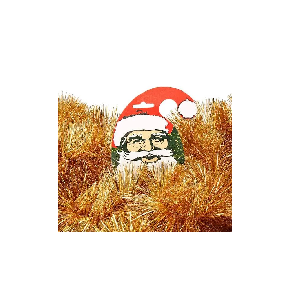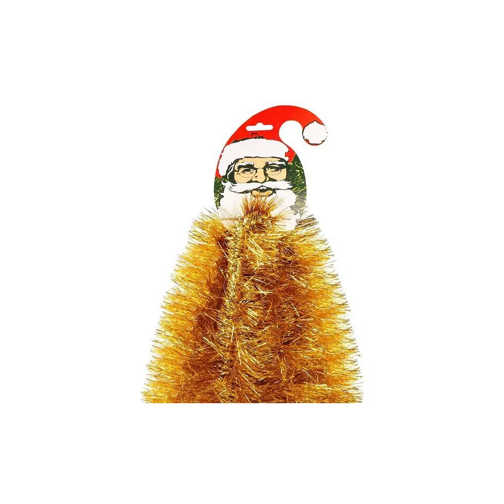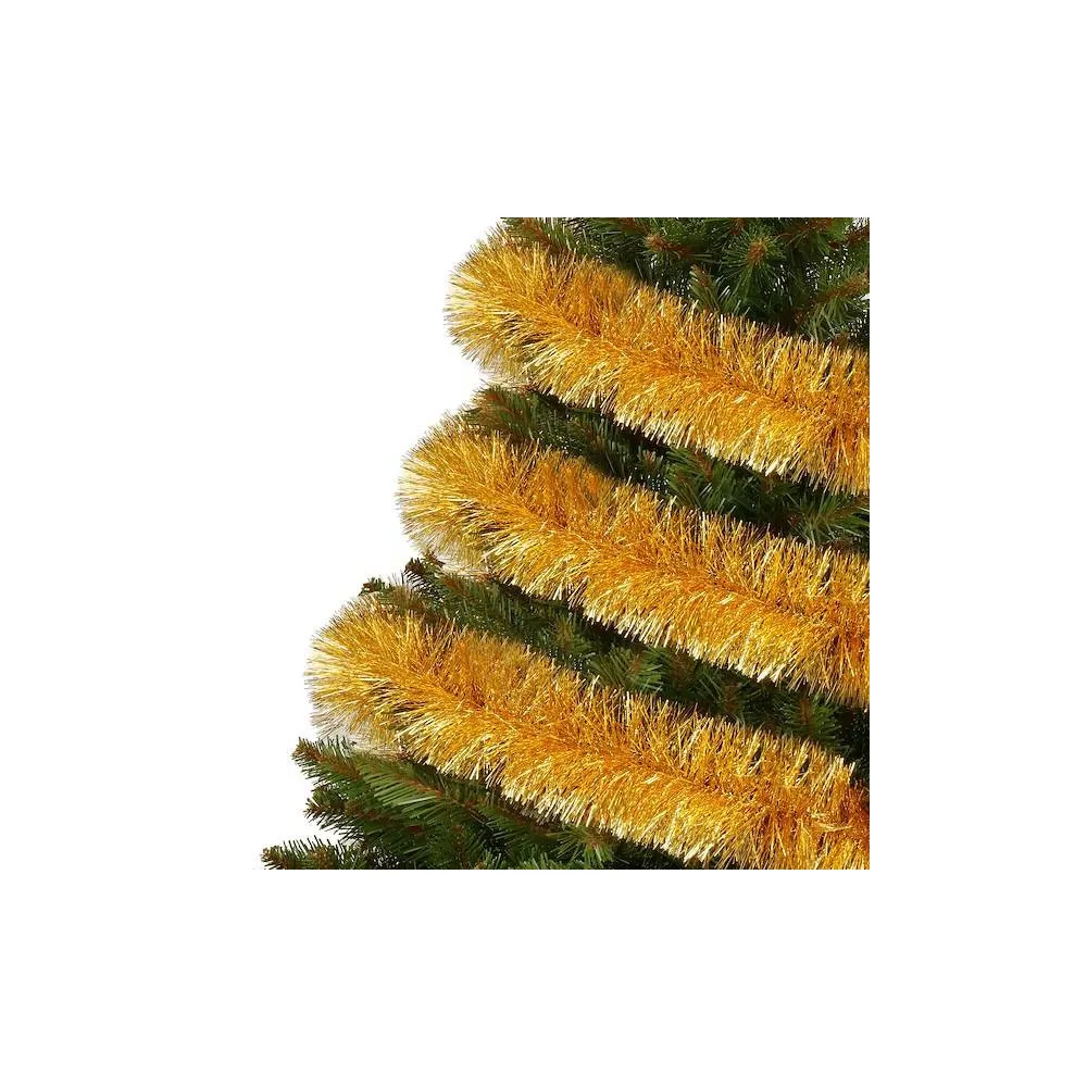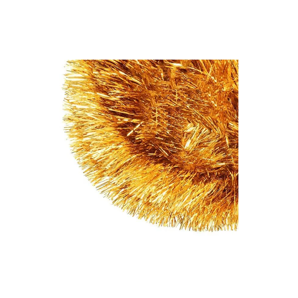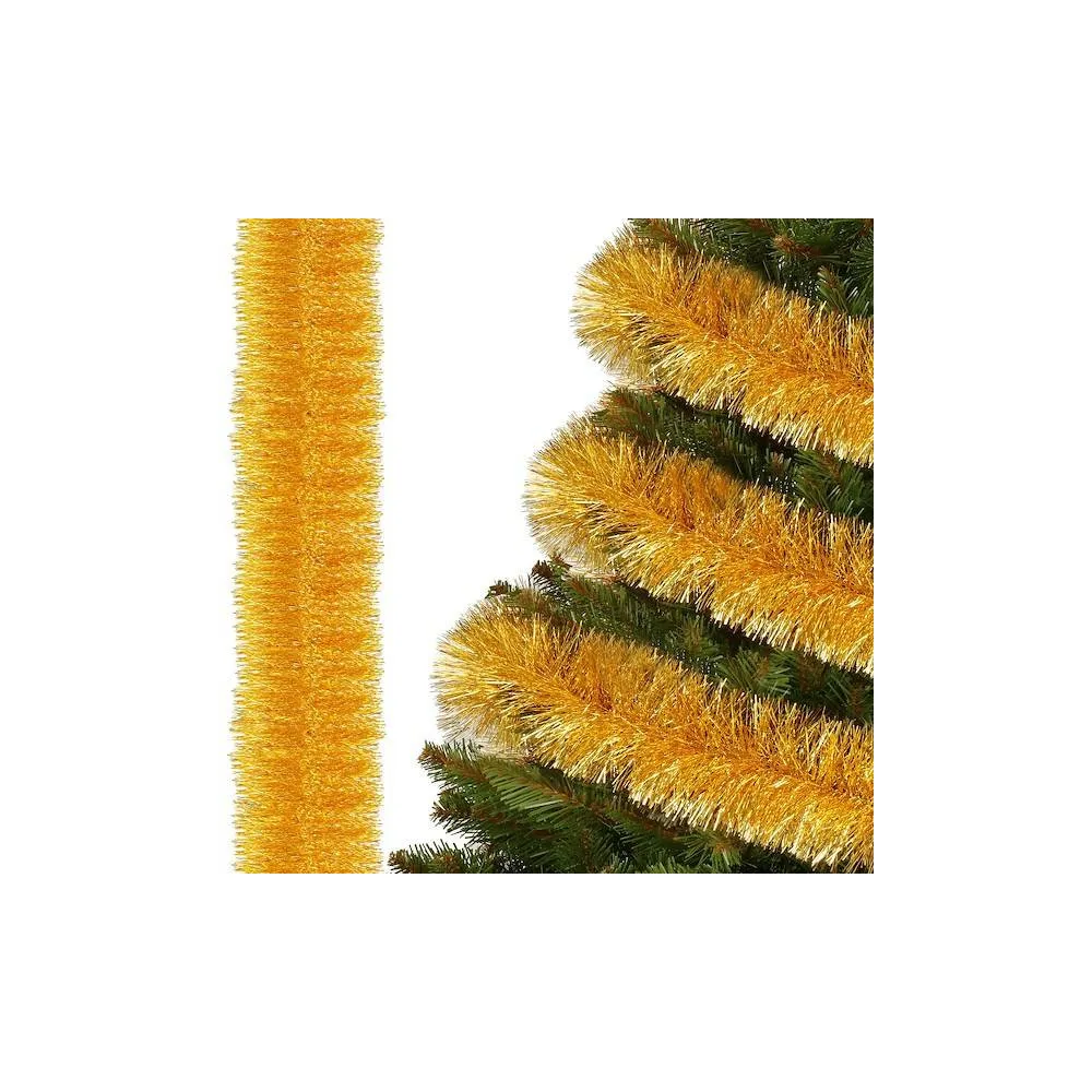 Vianočná girlanda s lesklo zlatým ihličím zaručene oživí a obohatí vašu sviatočnú výzdobu. Reťaz má hustú štruktúru, dĺžku 6 ma extra šírku 10 cm. Krásne sa trblieta, ľahko tvaruje aj napája. Bude vyzerať skvele, nech ho dáte na stromček, omotáte okolo zábradlia či trámov alebo použijete ako základ pre vianočné aranžmány.