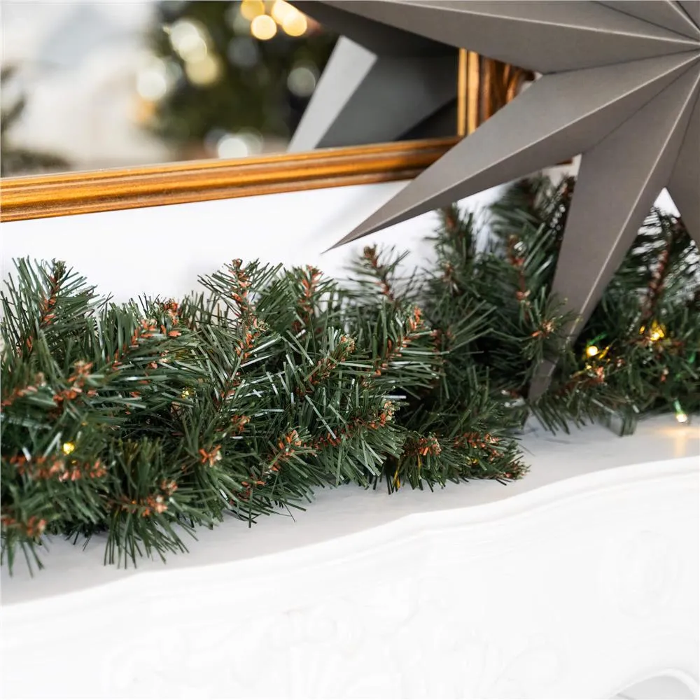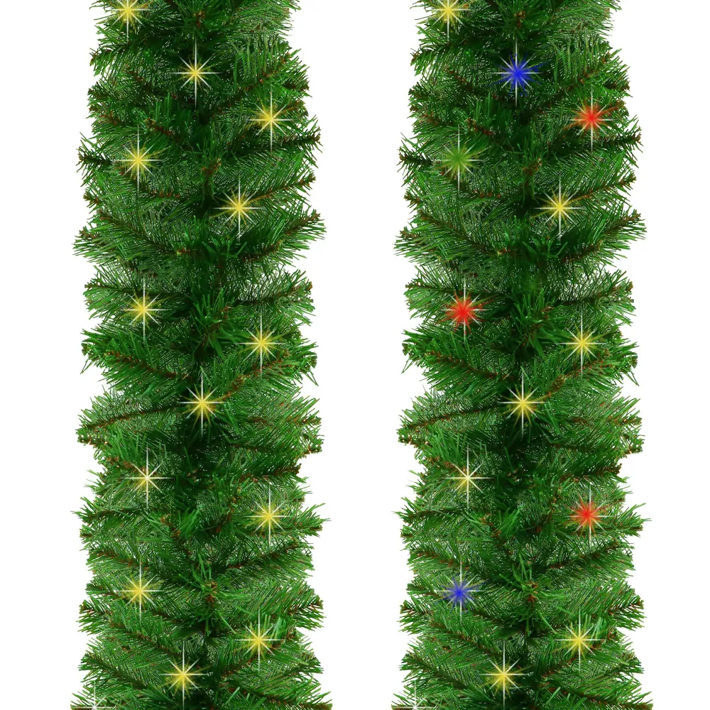 Prémiová girlanda z umelých vetvičiek a LED osvetlením. Dĺžka 2,7 m, šírka 25 cm, 50 LED diód napájaných na batérie. Reťaz má extra hustú skladbu vetvičiek pripomínajúcich pravé ihličie. Výborne sa dopĺňa o ďalšie dekorácie, ľahko sa tvaruje aj napája. Osvetlenie má 8 režimov svietenia a časovač. Táto vianočná dekorácia bude vyzerať skvele, nech ju dáte na stromček, omotáte okolo zábradlia, trámov alebo použijete ako základ pre vianočné aranžmány.