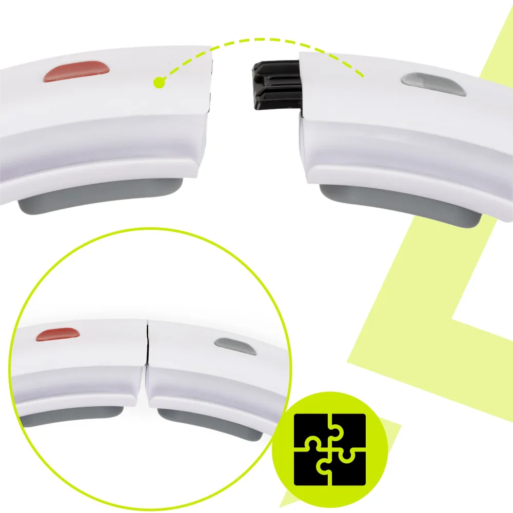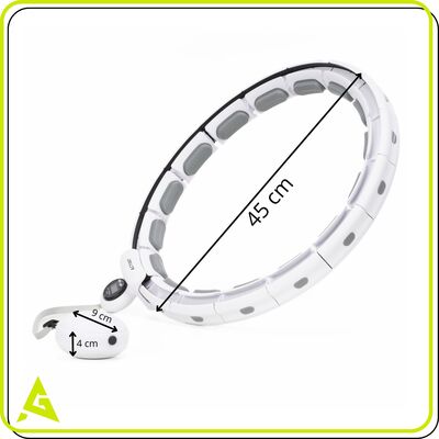 Masážny fitness obruč so závažím a počítadlom pre efektívne tvarovanie postavy a rýchlejšie spaľovanie tukov. Nastaviteľný obvod 70–110 cm. Nastaviteľná dĺžka a hmotnosť závažia do 400 g. Závažie na guličkových ložiskách pre plynulý pohyb. 16 masážnych prvkov na intenzívnu stimuláciu svalov. LCD počítadlo – spálené kalórie a počet otáčok.