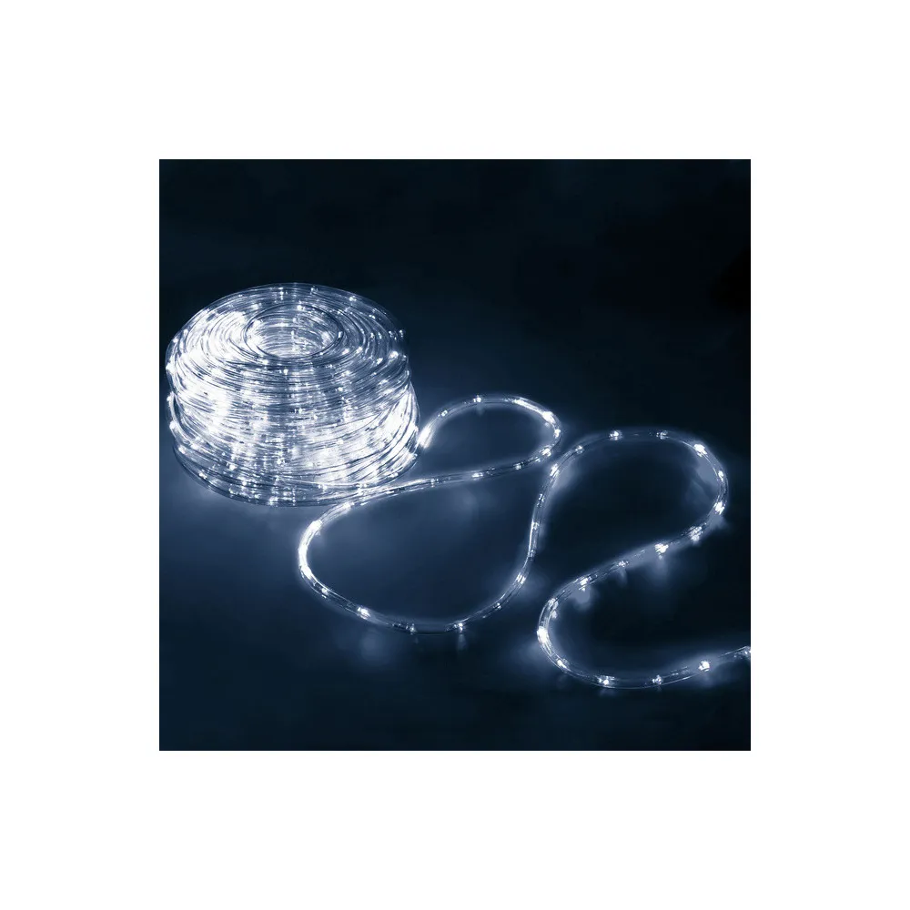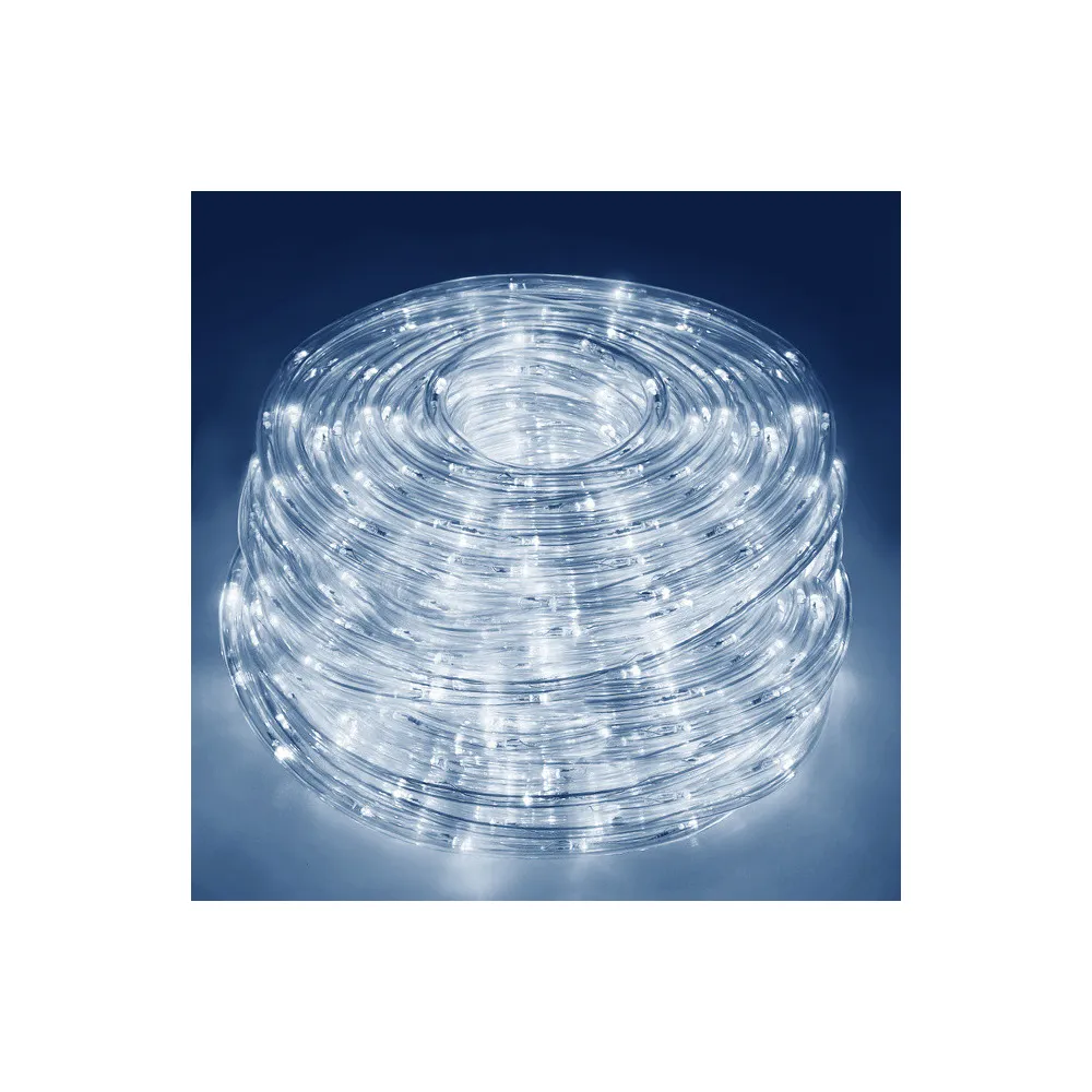 LED svetelná hadica s programátorom a 8 svetelnými funkciami. Úsporné ľad diódy, vnútorné aj vonkajšie použitie, vodeodolné prevedenie, krytie IP44. Dĺžka svetelnej časti 20 m, napájací kábel 1,5 m. Farba studená biela, 480 ľad.