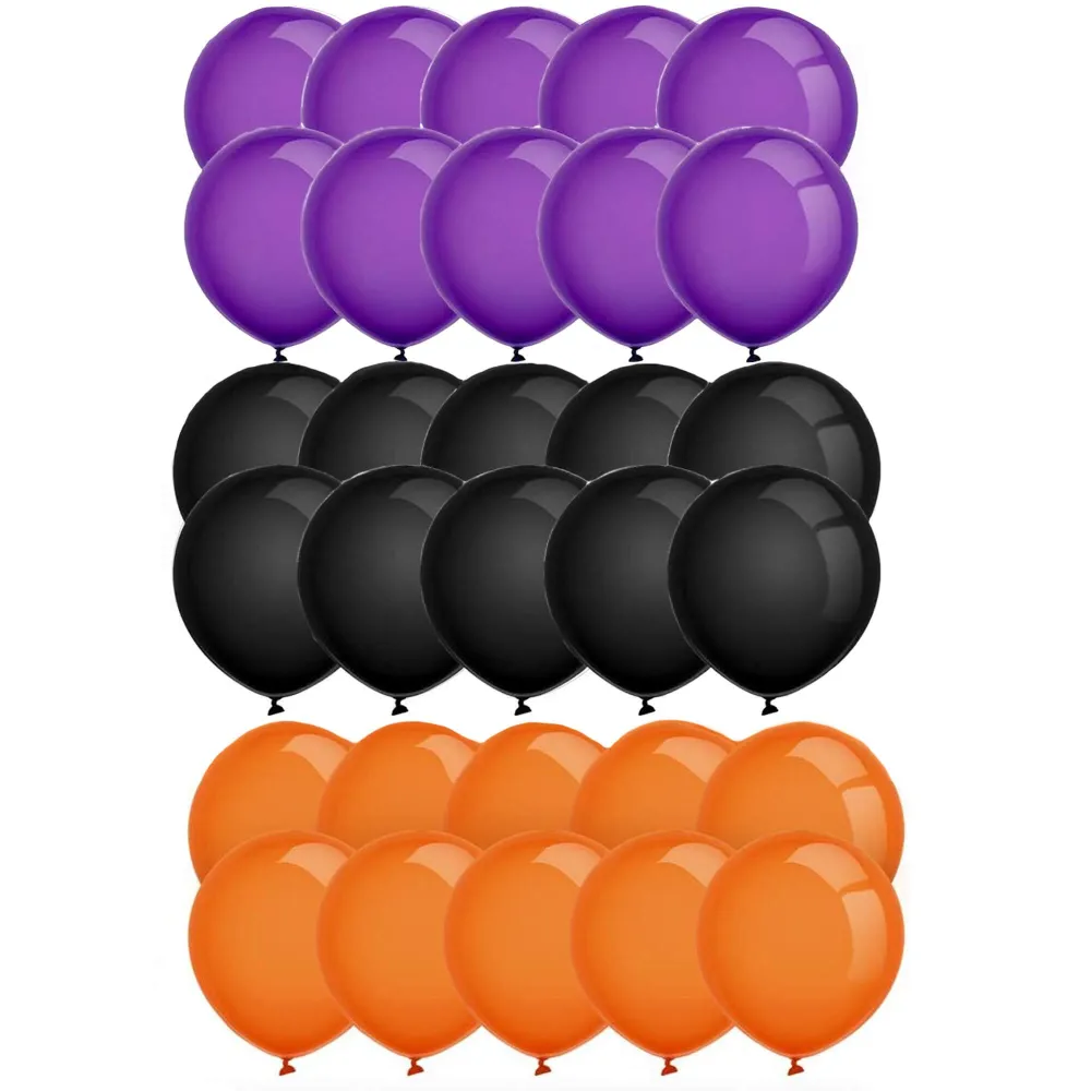 Úžasná sada Halloweenskych dekorácií na vytvorenie strašidelnej atmosféry u vás doma. Jesenná sada balónikov s girlandou so strašidelnými motívmi v čierno-oranžovo-fialovej kombinácii pôsobí výrazne a doplní každý interiér aj párty. Vyrobené z vysoko kvalitného latexu, odolné a bezpečné na použitie.