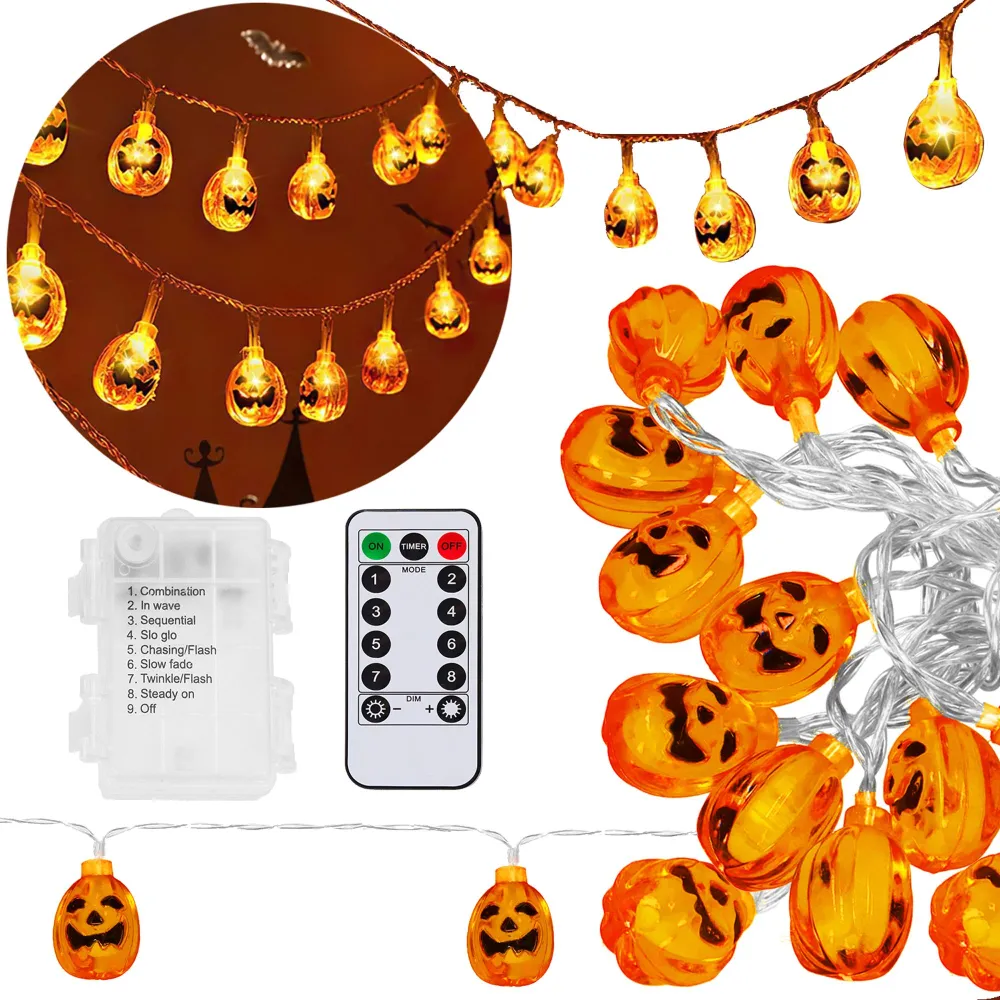 - Očarujúce svetlá v tvare tekvíc so strašidelnými tvárami