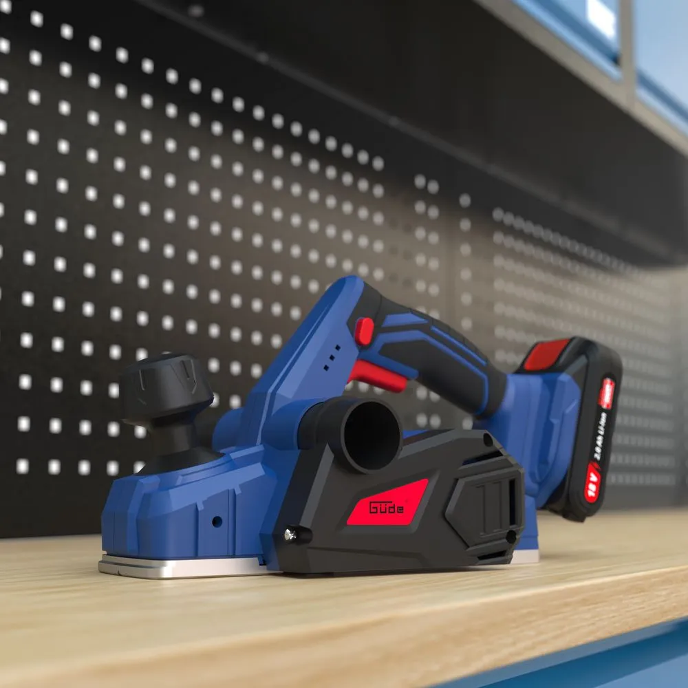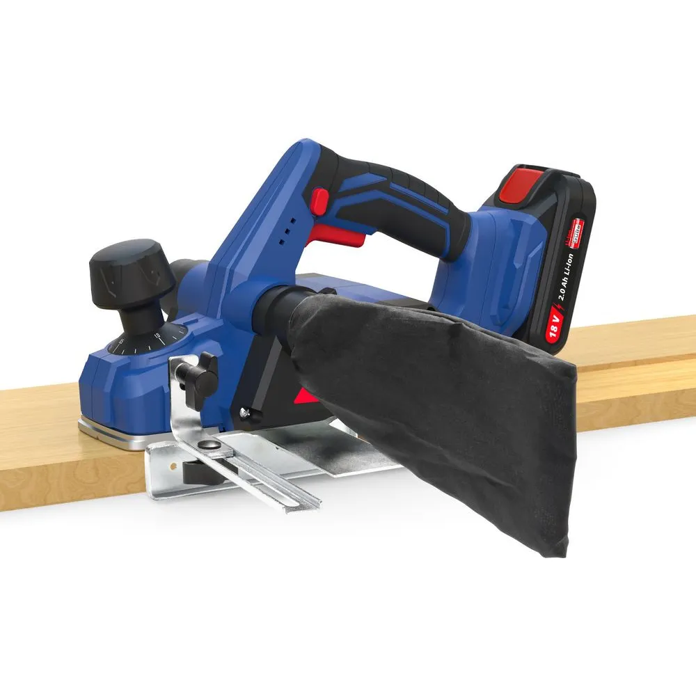 Akumulátorový hoblík zo série akumulátorového náradia 18V E3. Plynulé nastavenie hĺbky záberu až do 1,5 mm. Protišmyková rukoväť s mäkkým povrchom.