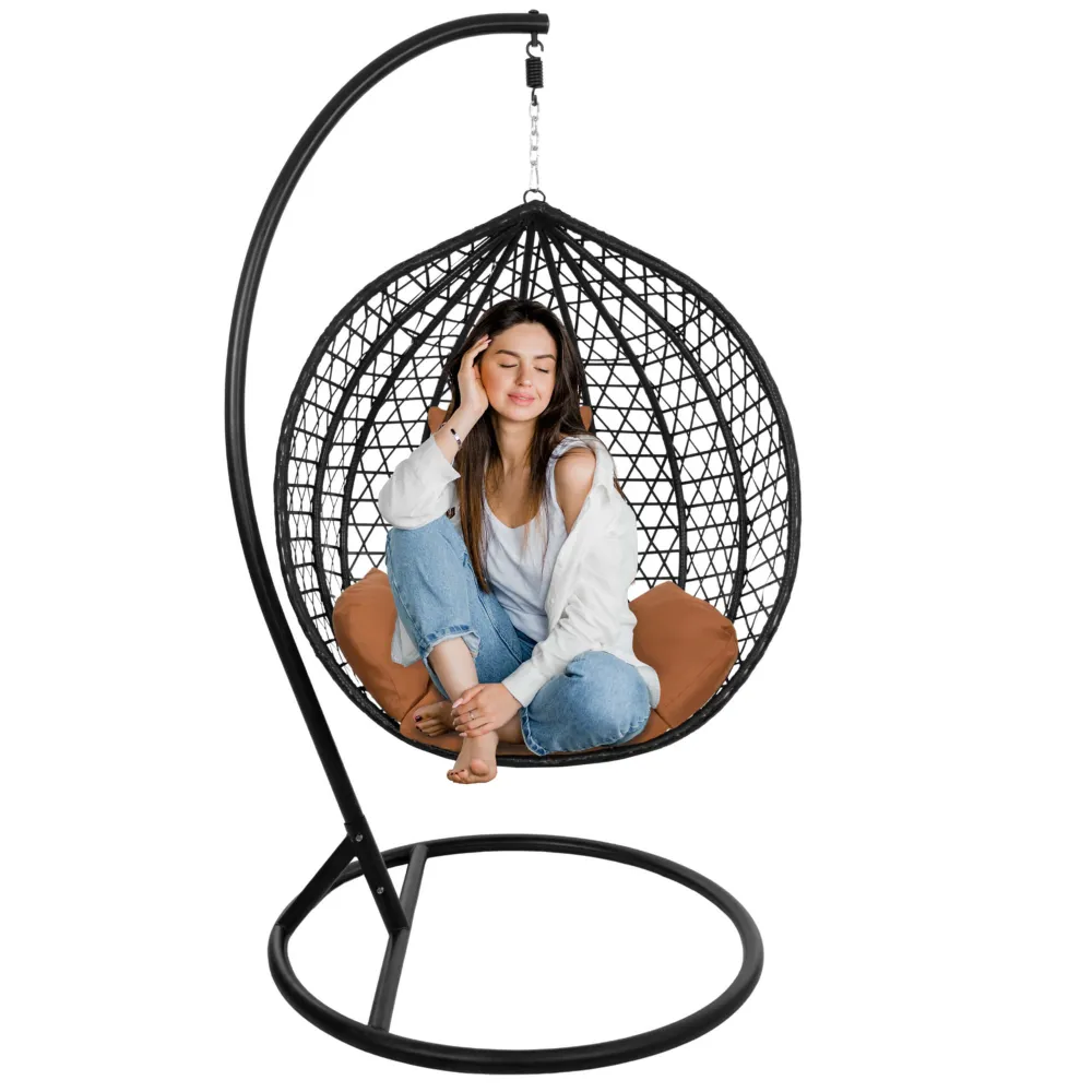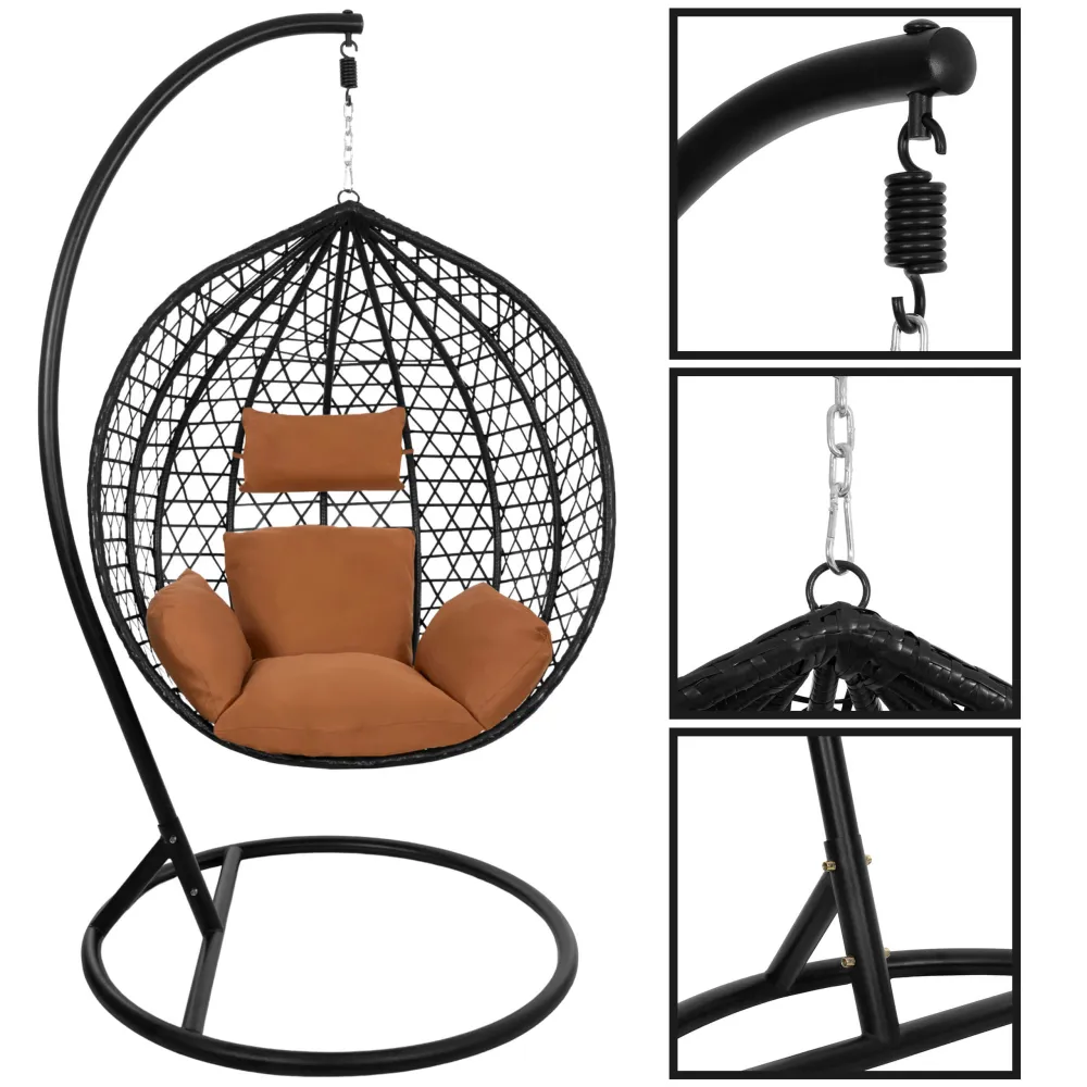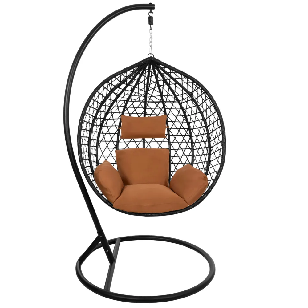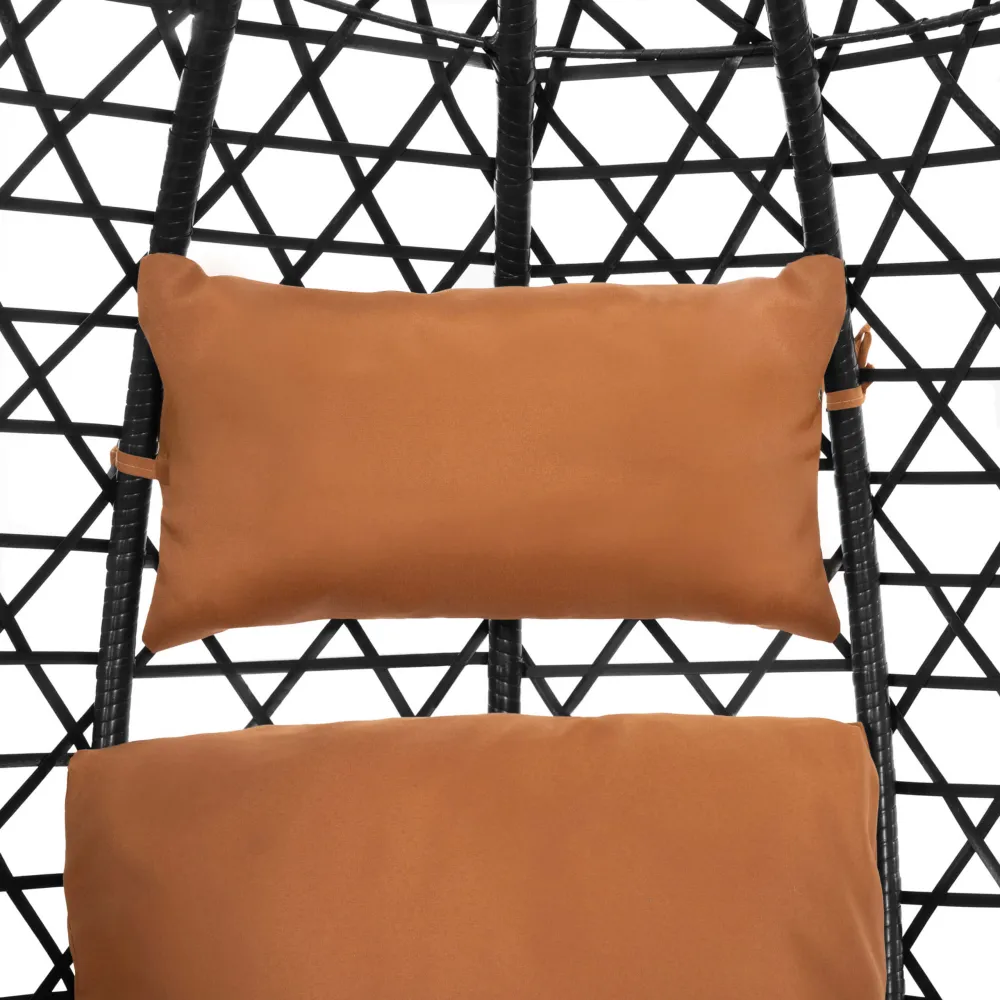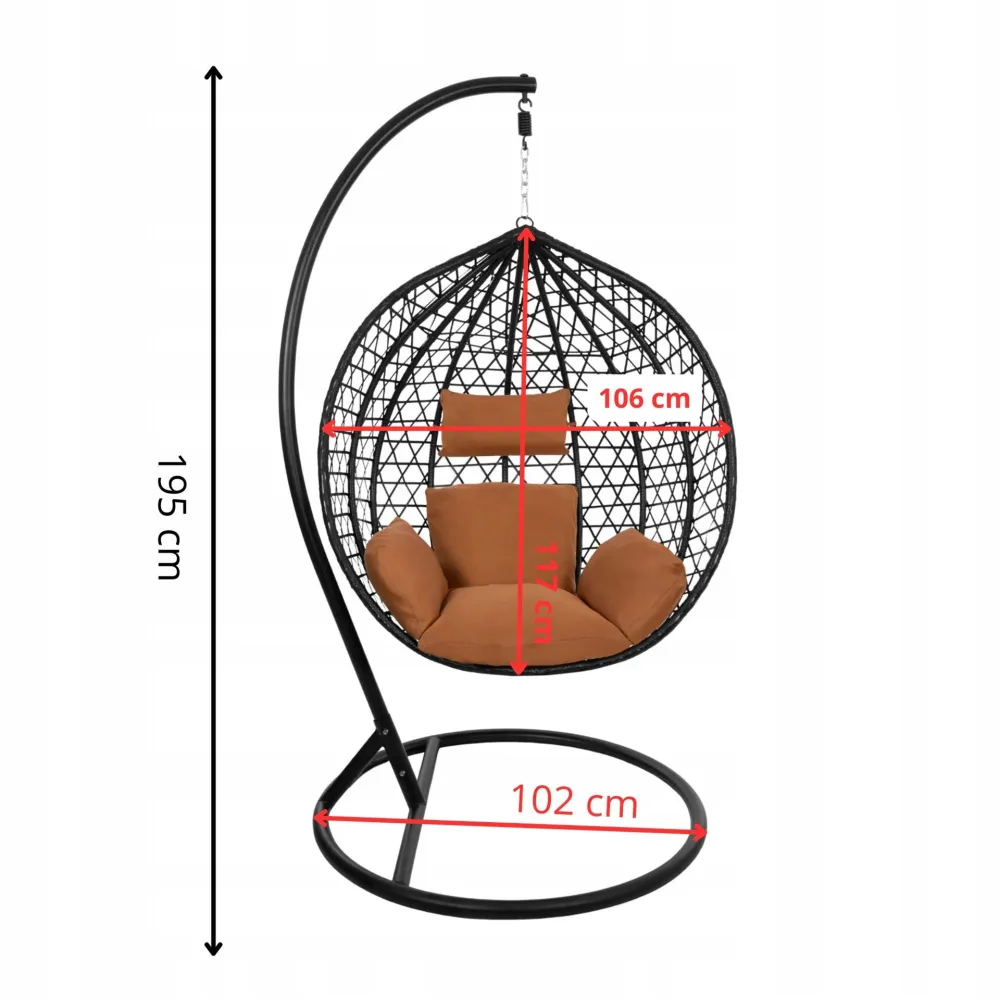 Závesné hojdacie kreslo v tvare vajíčka ponúka prepychový priestor na chvíle relaxácie a odpočinku. Výplet koša je zhotovený z ručne pleteného technoratanu. Pre komfortný odpočinok je kreslo vybavené pohodlným extra veľkým vankúšom a opierkou hlavy. Vankúš je opatrený zipsom a vyplnený mäkkou penovou vatou. Na dotyk príjemný poťah vankúša je možné v prípade potreby sňať a kedykoľvek vyprať v práčke.
