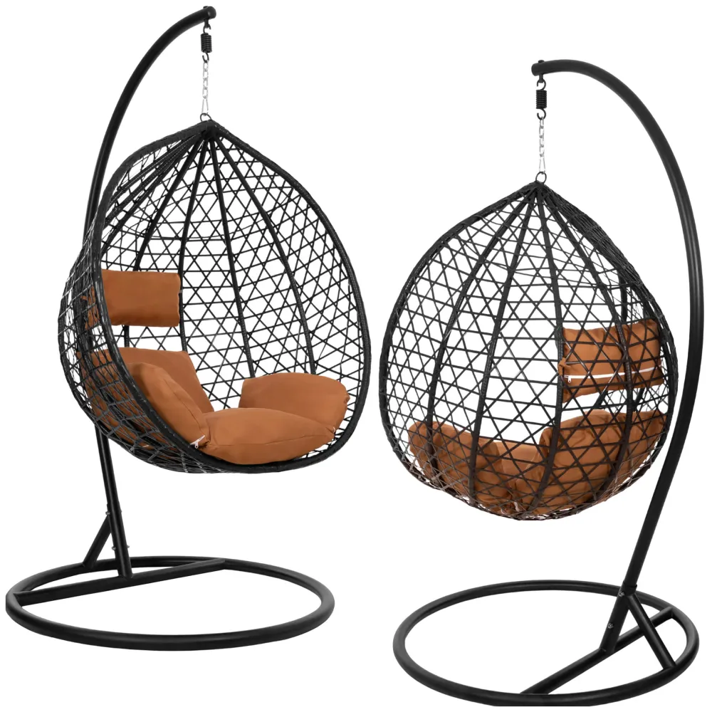 Hojdacie kreslo so stojanom SPRINGOS BEATA čierne + hnedé vankúše