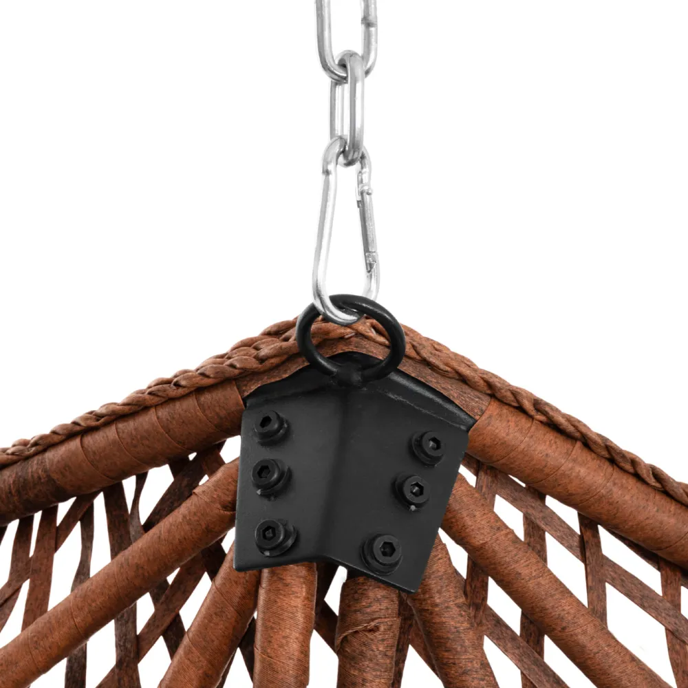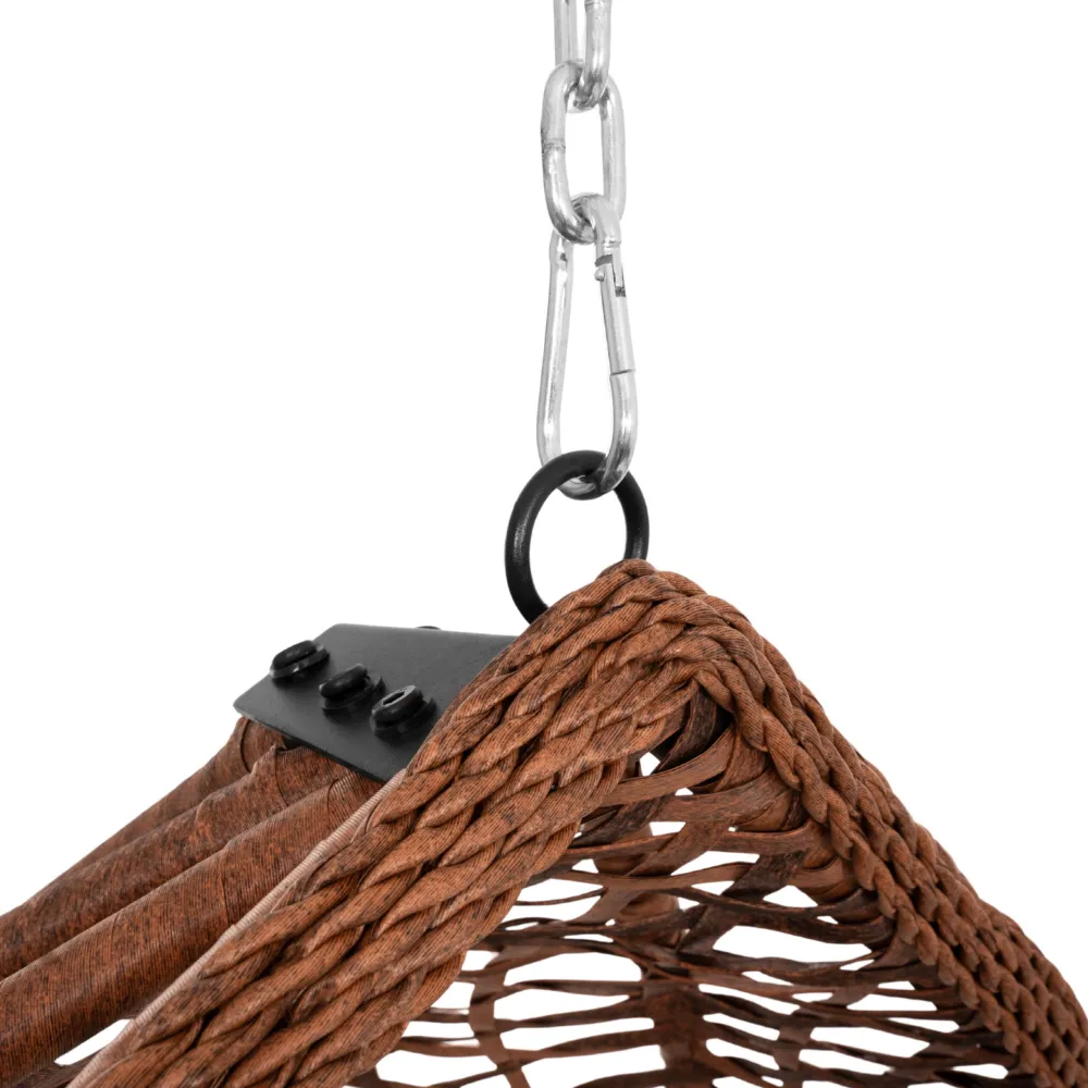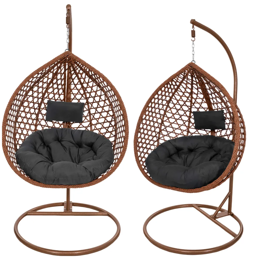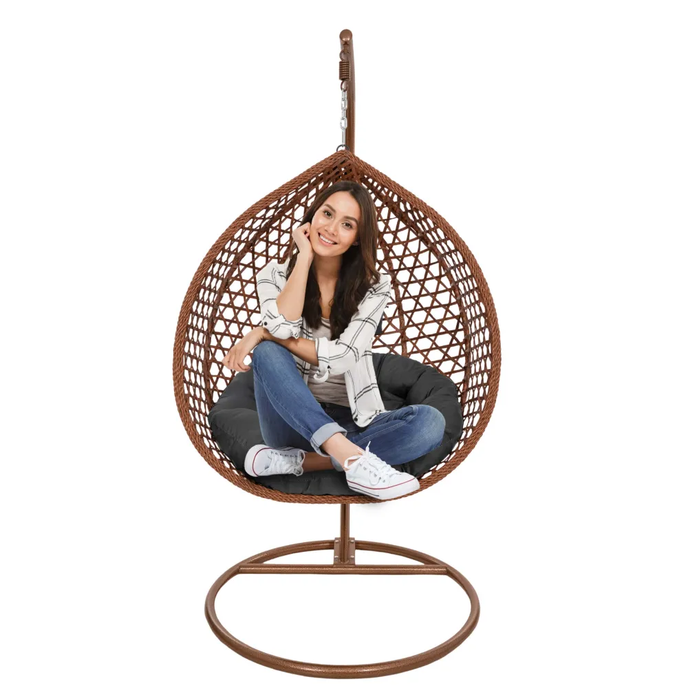 Závesné hojdacie kreslo v tvare vajíčka ponúka prepychový priestor na chvíle relaxácie a odpočinku. Výplet koša je zhotovený z ručne pleteného masívneho technoratanu . Pre komfortný odpočinok je kreslo vybavené pohodlným extra veľkým vankúšom a opierkou hlavy. Vankúš je opatrený zipsom a vyplnený mäkkou penovou vatou. Na dotyk príjemný poťah vankúša je možné v prípade potreby sňať a kedykoľvek vyprať v práčke.