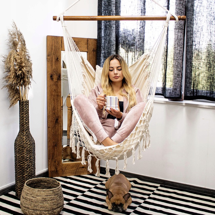 Závesné hojdacie kreslo 130x100 cm, krémové SPRINGOS BORGO III