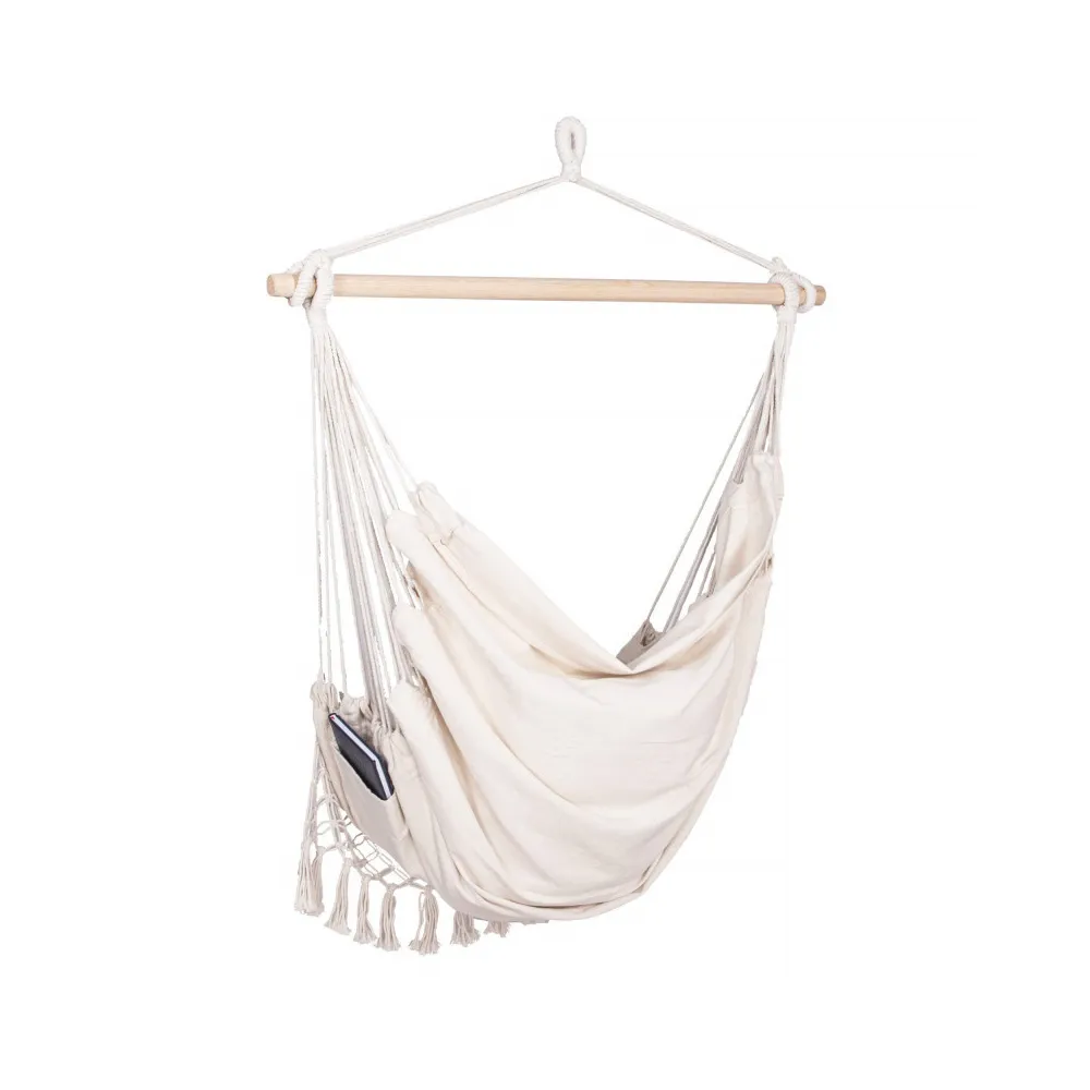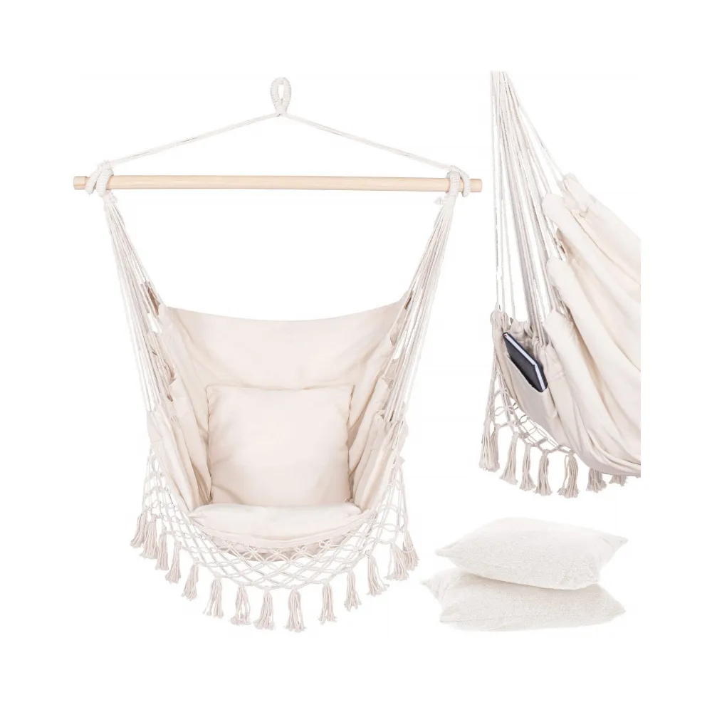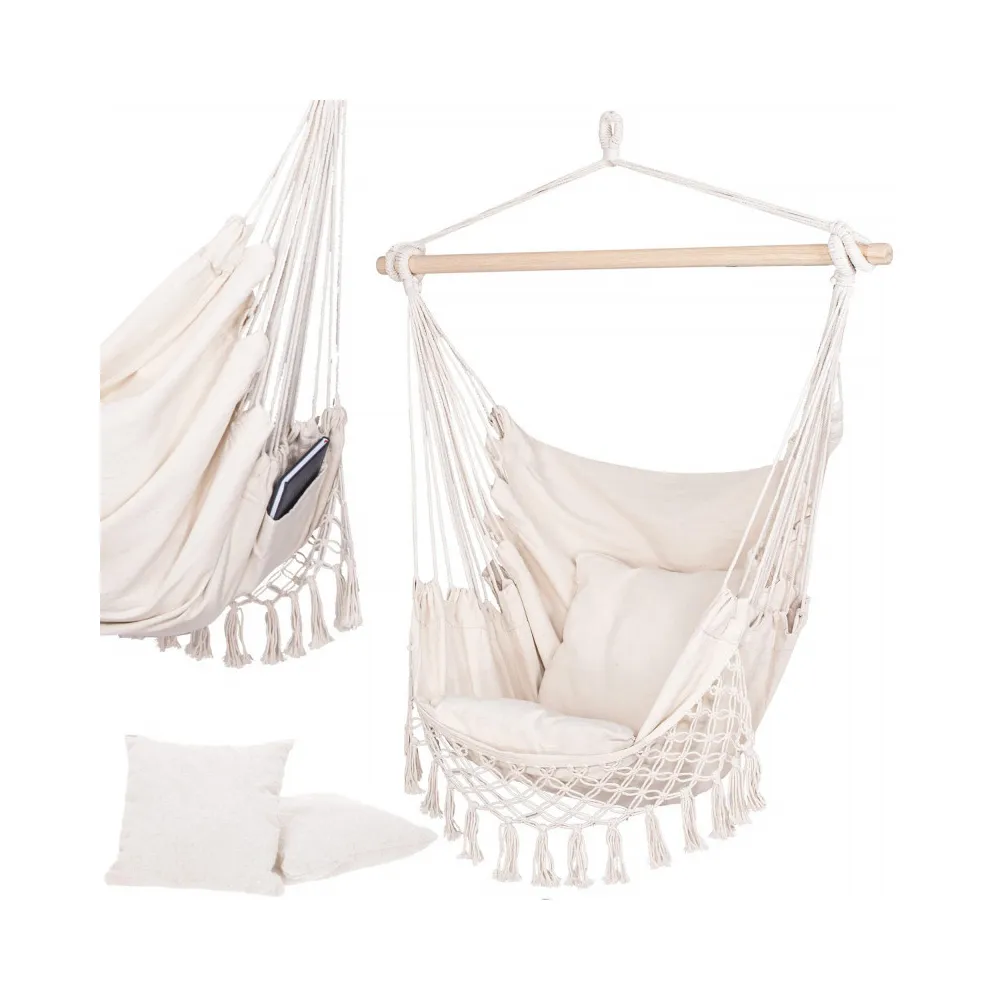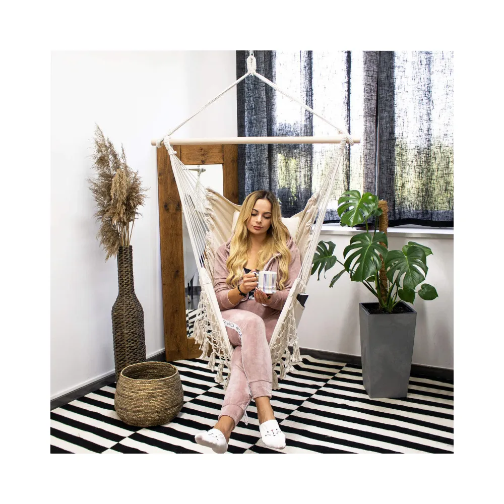 Nespornou výhodou je, že je vyrobená z prírodných materiálov vrátane bavlny a dreva, ktoré zaručujú nevtieravý vzhľad a maximálnu priedušnosť. Ľahký a odolný materiál sa dokonale prispôsobí telu . Poskytuje úplnú relaxáciu v prirodzenej, nenútenej polohe . Farby a strapce v boho štýle dokonale ladia s najnovšími trendmi .