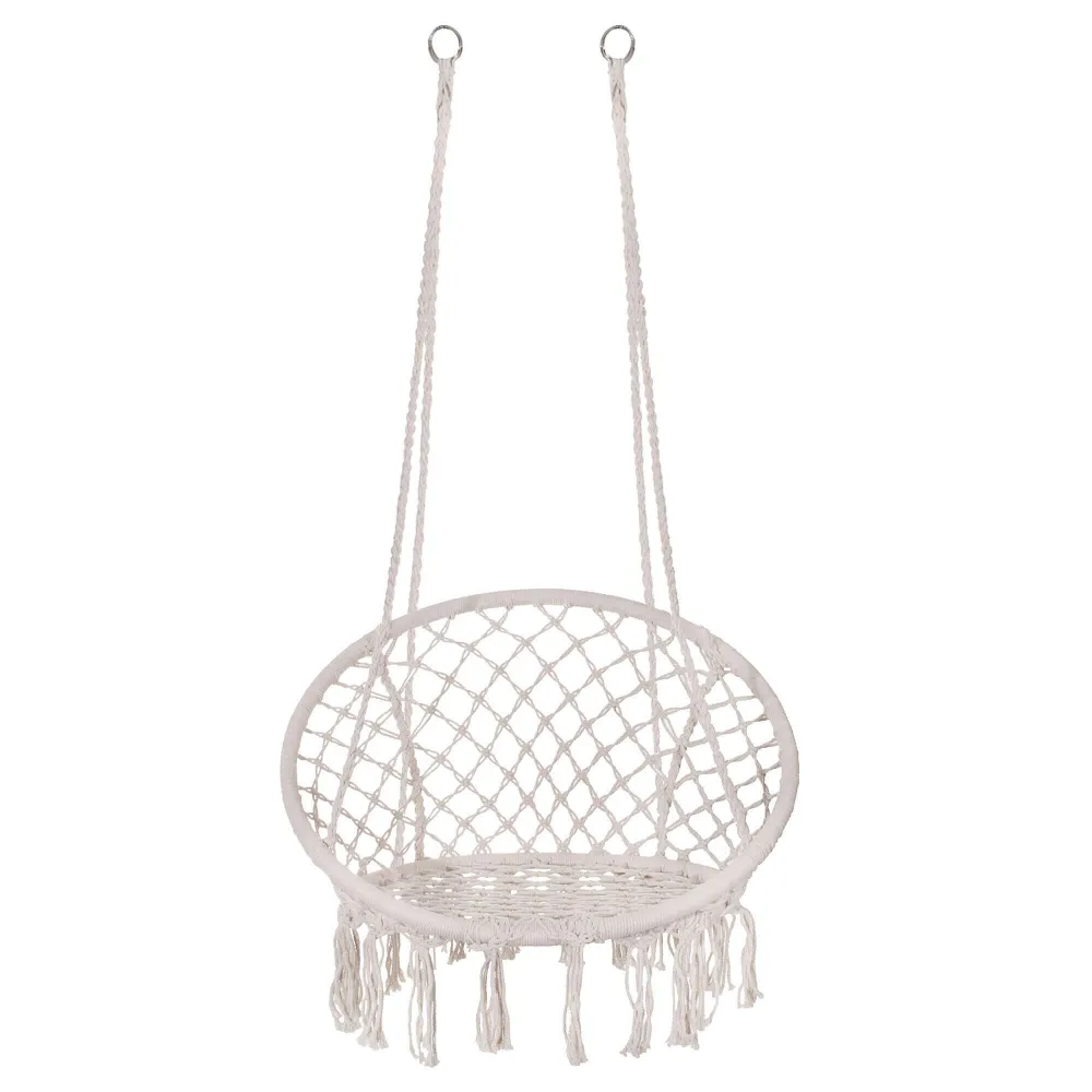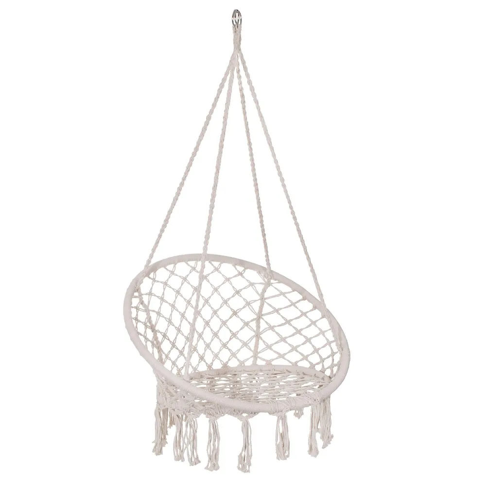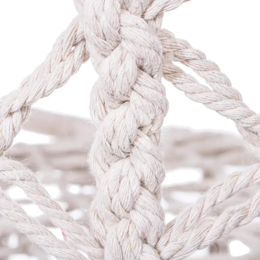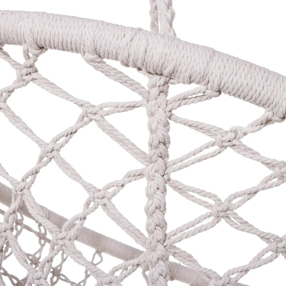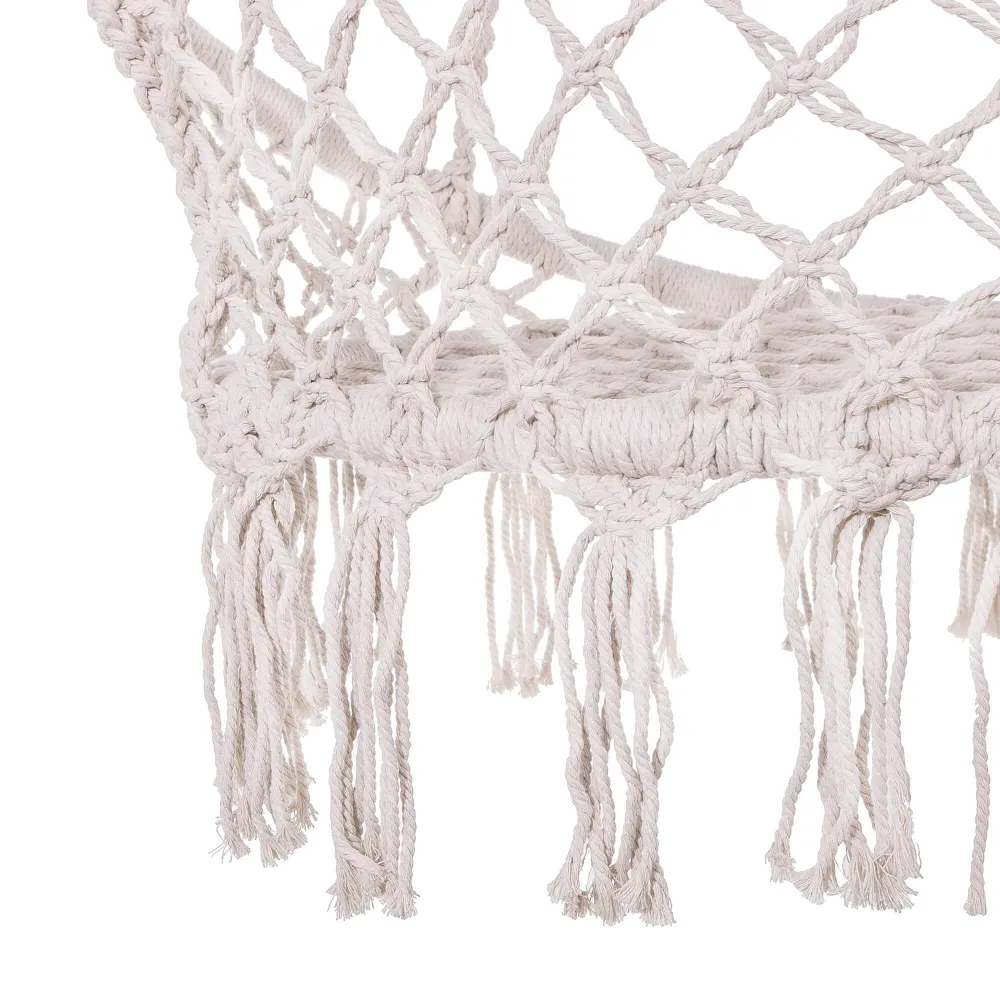 Módne strapce v štýle boho, krásna farba a povrazová väzba dodávajú zavesenej hojdačke úžasný vzhľad. Esteticky prepletené laná a nimi potiahnuté hrubé obruče zaisťujú odolnosť a pohodlie.
