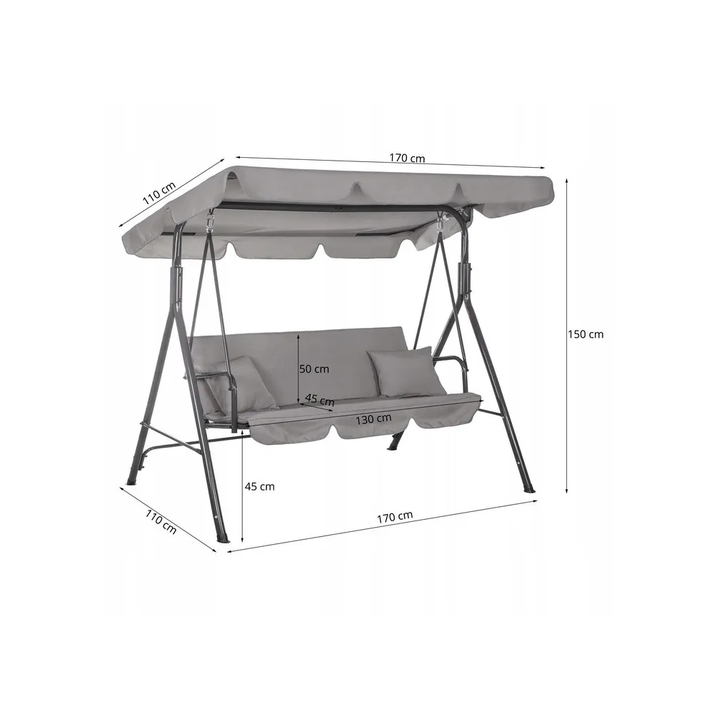 - Celkové rozmery hojdačky: 170x110x150 cm (šxhxv)