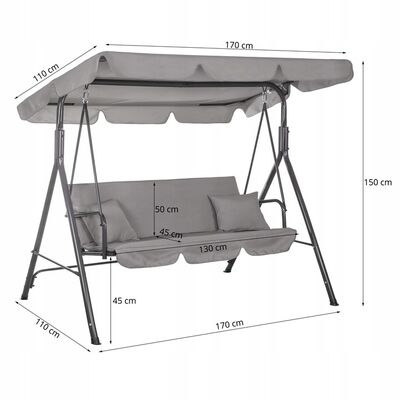 Záhradná hojdačka SPRINGOS GRACE 3-miestna, šedá
