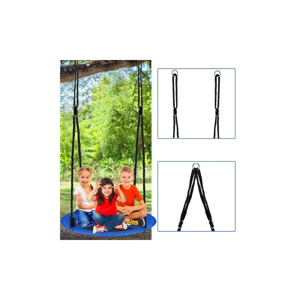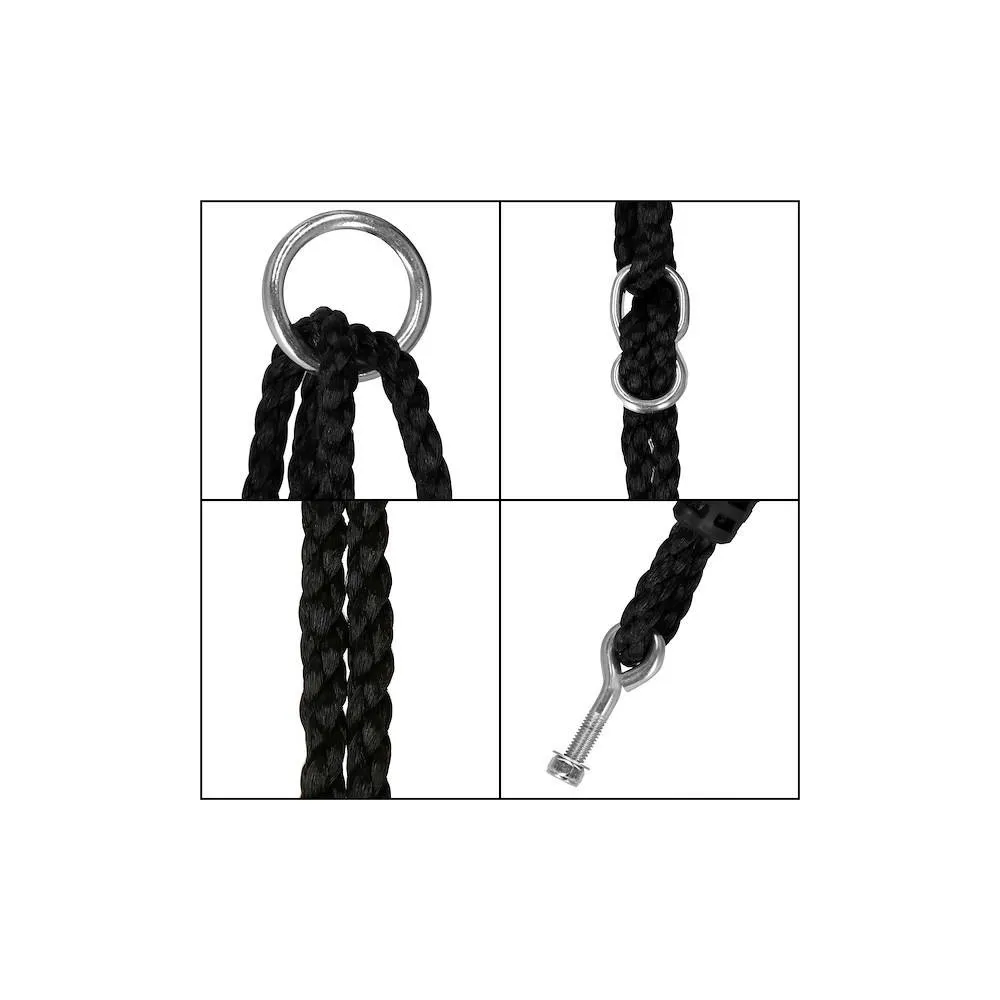Závesná záhradná hojdačka s pohodlným textilným výpletom sedadla . Priemer 110 cm, nastaviteľná výška lán 80-145 cm, robustná konštrukcia, nosnosť 150 kg. Dostatočne veľký podsedák umožňuje hojdanie v ľahu alebo zábavu viacerých detí súčasne.