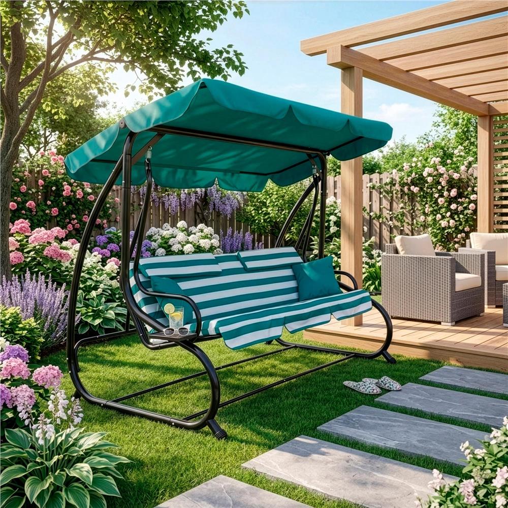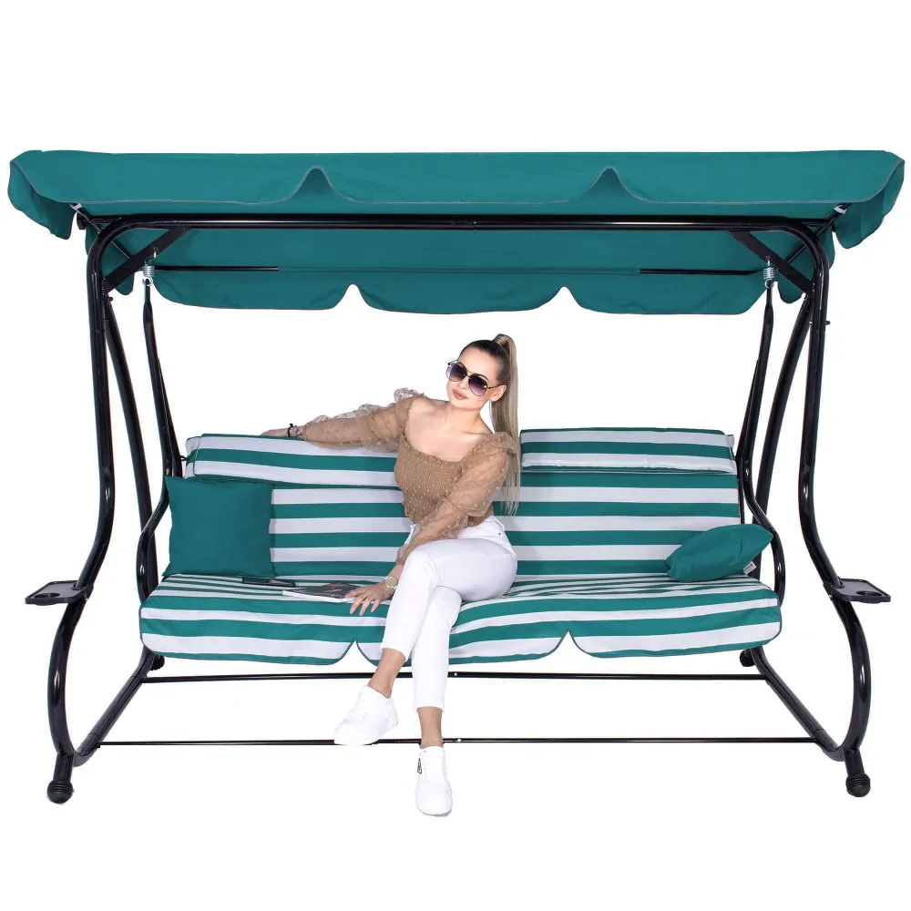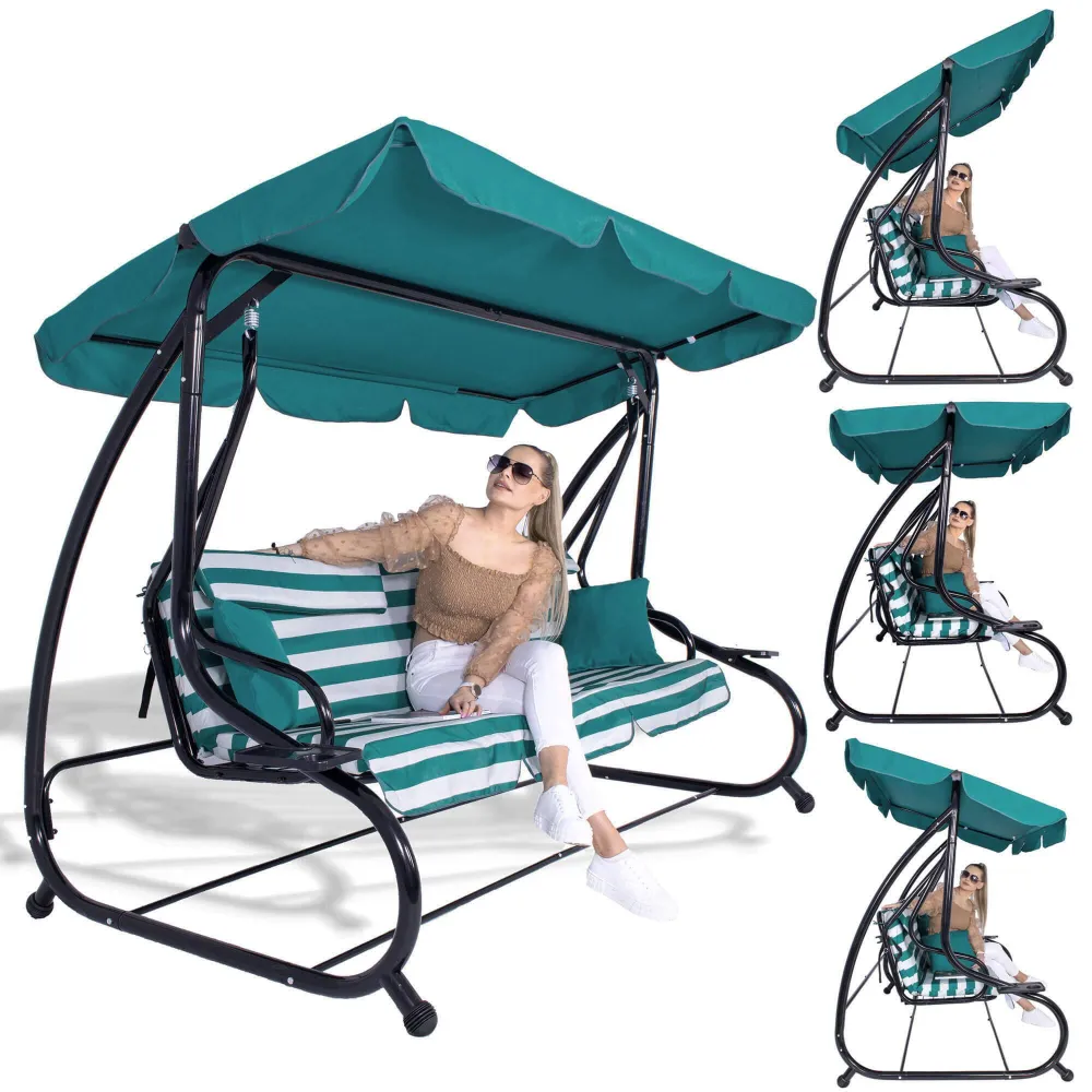 Záhradná hojdačka 3-miestna, zelená SPRINGOS LUNA