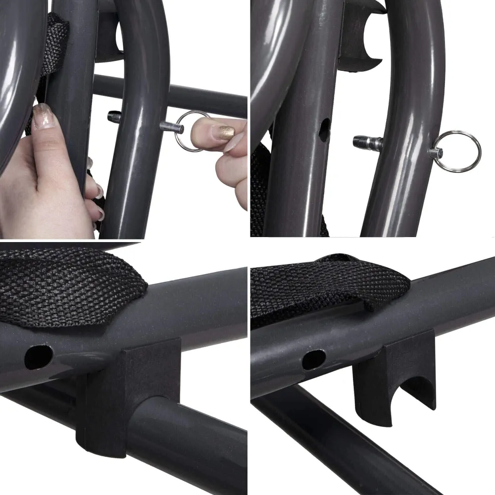 Stabilná konštrukcia zaisťuje vysokú nosnosť až 300 kg a dlhú životnosť . Vodeodolný materiál a ochrana proti korózii umožňujú bezproblémové vonkajšie použitie. Nastaviteľná strieška chráni pred slnkom a pružinové uchytenie zaisťuje plynulé a bezpečné hojdanie .