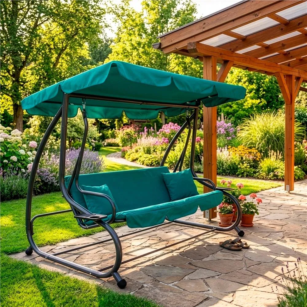 Záhradná hojdačka 3-miestna, zelená SPRINGOS LUNA