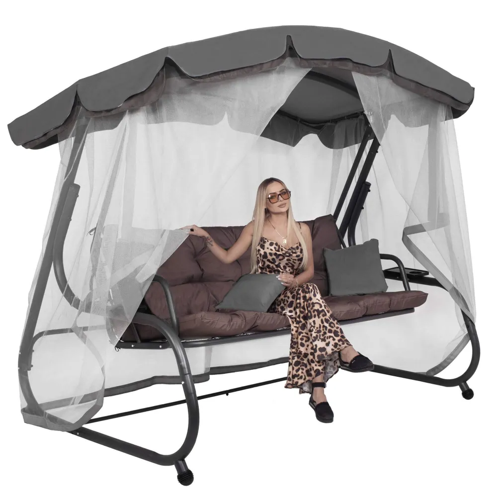 Záhradná hojdačka 3-miestna SPRINGOS JOKO GS0030, šedá