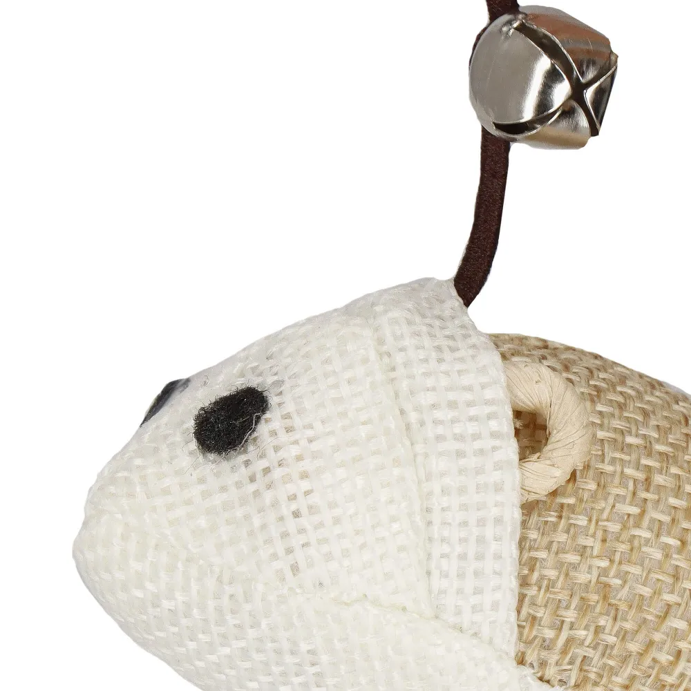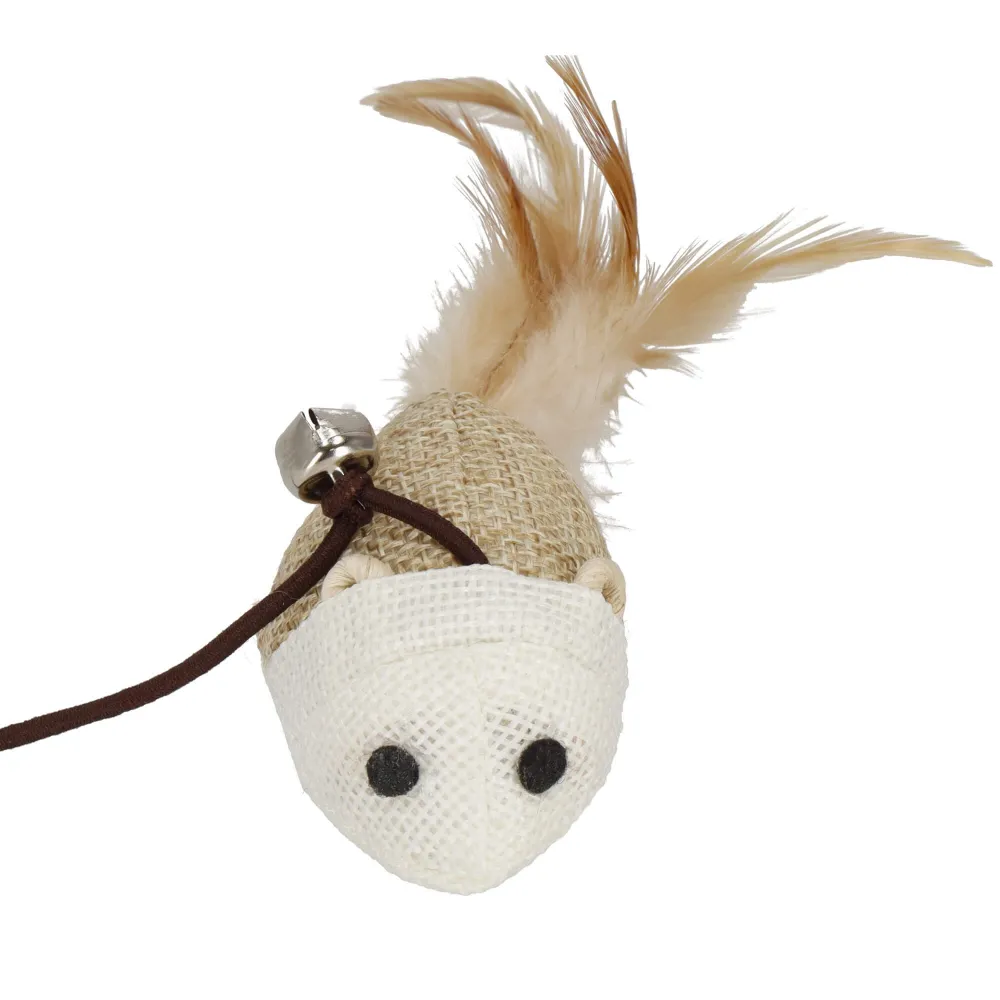 Myš je upevnená na elastickom povrázku, čo umožňuje realistický pohyb a vytvára dojem skutočnej koristi. Vďaka zvoniacej rolničke sa hra stáva ešte zaujímavejšou, pretože mačka reaguje na zvuky a vizuálne podnety.