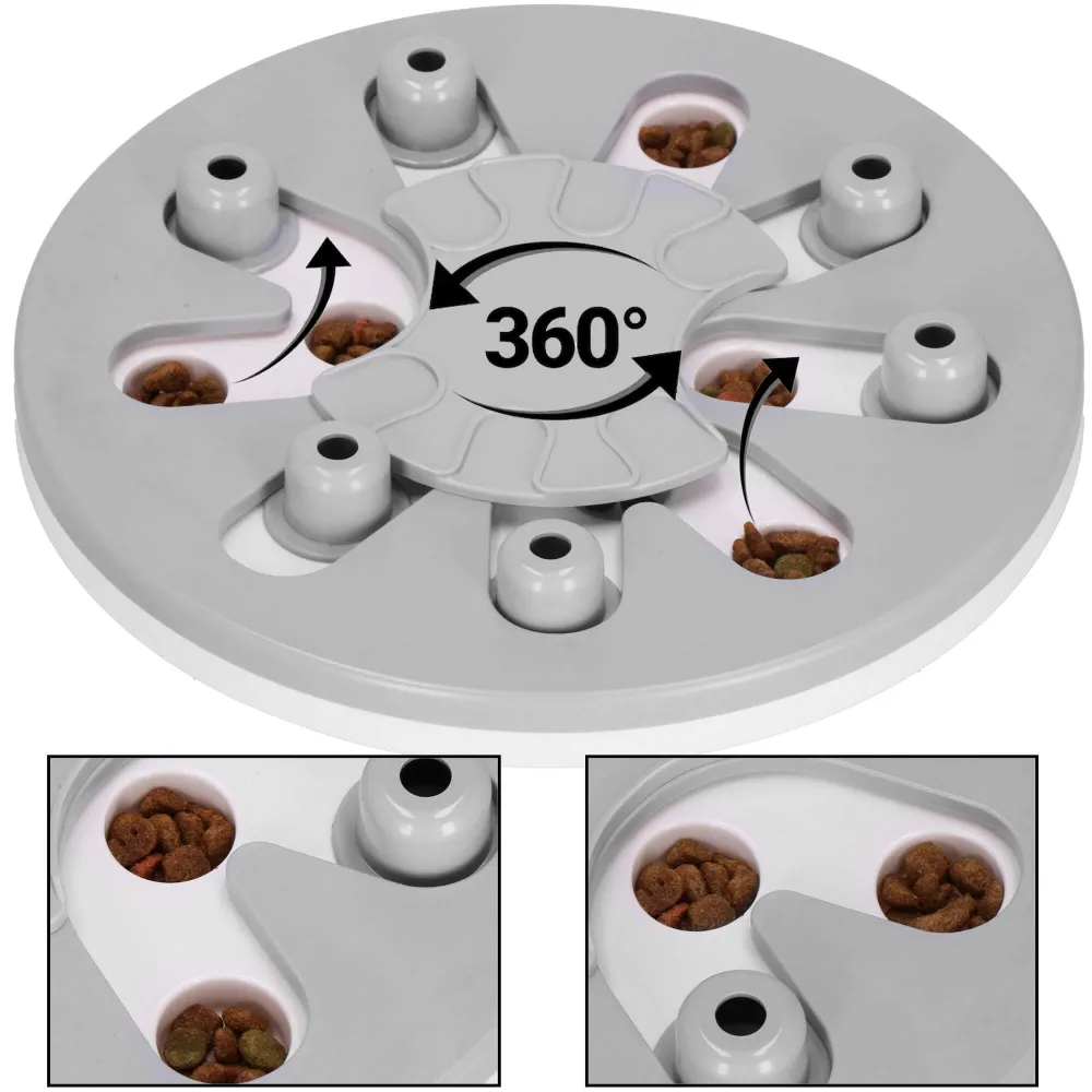 Vďaka otočnému stredovému kolesu (360 °) pes precvičuje svoju zručnosť a trpezlivosť, čo prispieva k jeho duševnej pohode. Protišmyková základňa zaisťuje, že hračka zostane na mieste aj počas intenzívneho používania, takže je bezpečná a stabilná.
