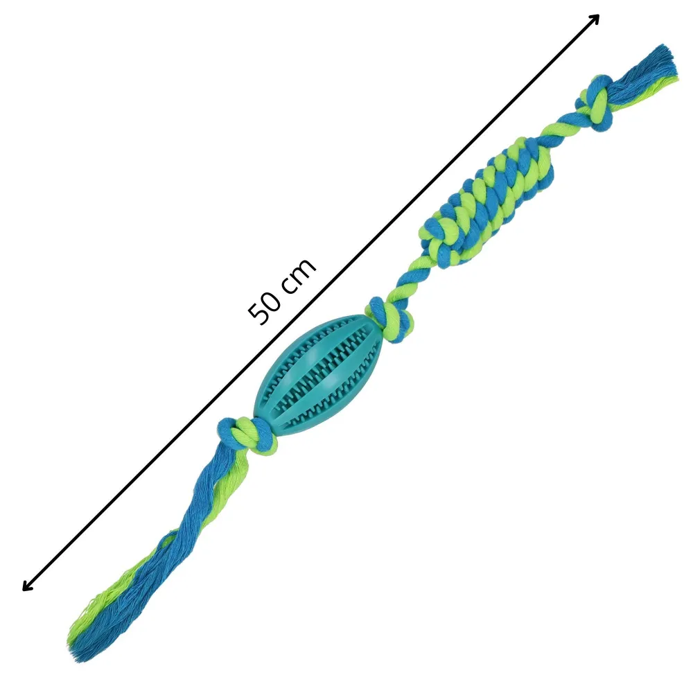 Interaktívna hračka pre psov, ktorá spája zábavu so starostlivosťou o chrup. Preťahovacia hračka s pevným lanom a gumovou loptičkou na maškrty zaručuje dlhotrvajúcu zábavu a efektívny tréning čeľustných a zubných svalov. Preťahovadlo s loptou na maškrty je perfektný spôsob, ako zabaviť a unaviť psa. Možno ho využiť aj na aportovanie. Odolné materiály zaisťujú bezpečnosť a dlhú životnosť. Loptička čistí zuby, masíruje ďasná a možno ho naplniť maškrtami pre extra motiváciu.