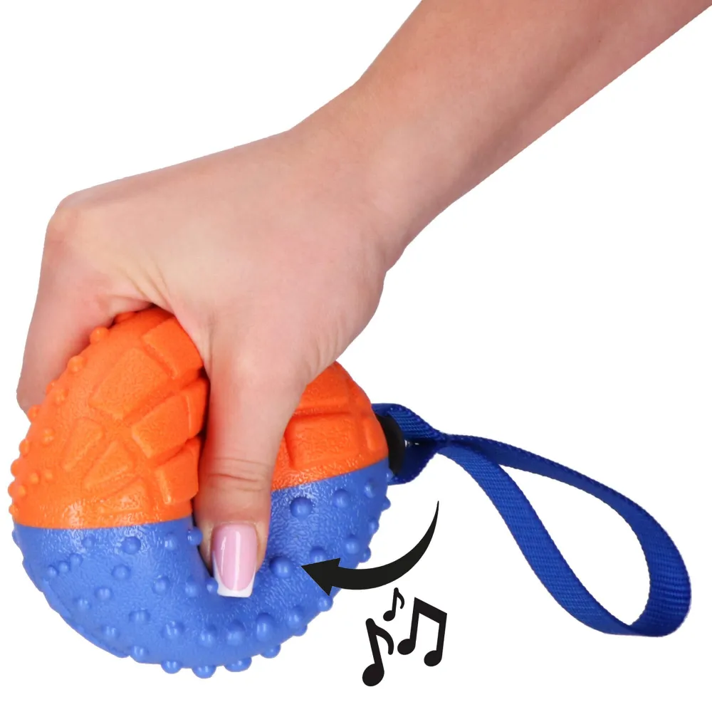 Preťahovacia hračka pre psov, ktorá spája zábavu so starostlivosťou o chrup. Hryzacia hračka s pútkom a gumovou loptičkou zaručuje dlhotrvajúcu zábavu a efektívny tréning čeľustných a zubných svalov. Preťahovadlo s pískacou loptou je perfektný spôsob, ako zabaviť a unaviť psa. Možno ho využiť aj na aportovanie. Odolné materiály zaisťujú bezpečnosť a dlhú životnosť.