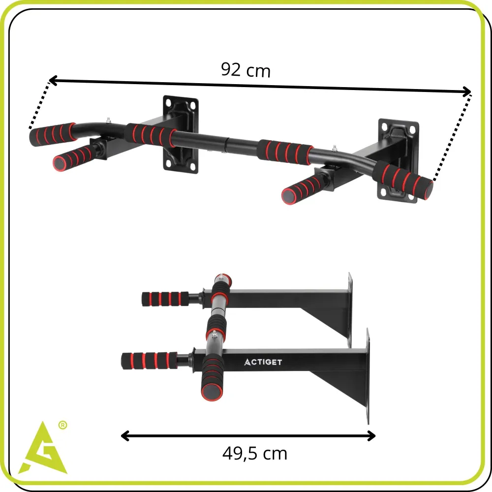Základom je masívna oceľová konštrukcia s výstuhou , ktorá zaisťuje vysokú pevnosť, stabilitu a dlhú životnosť. Rukoväte z mäkčenej peny poskytujú pohodlný a bezpečný úchop aj pri intenzívnom tréningu. Súčasťou balenia je uchytávací materiál , ktorý umožňuje pevnú montáž na stenu. Praktické rozmery 92x49,5 cm zaisťujú dostatok priestoru pre komfortné cvičenie aj v domácich podmienkach.