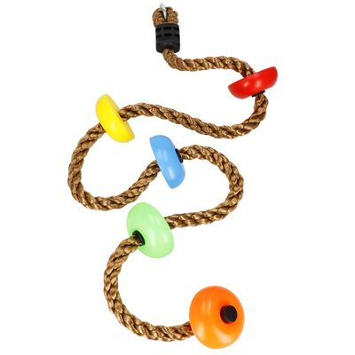 Detské lezecké lano s úchytmi. Dĺžka 190 cm. Pevný a odolný materiál, ochrana proti roztrhnutiu, vysoká nosnosť až 150kg. Protišmykový povrch na úchytoch. Jednoduchá inštalácia. Zábavná pohybová aktivita, ktorá rozvíja a posilňuje kondíciu, obratnosť a koordináciu vašich detí.