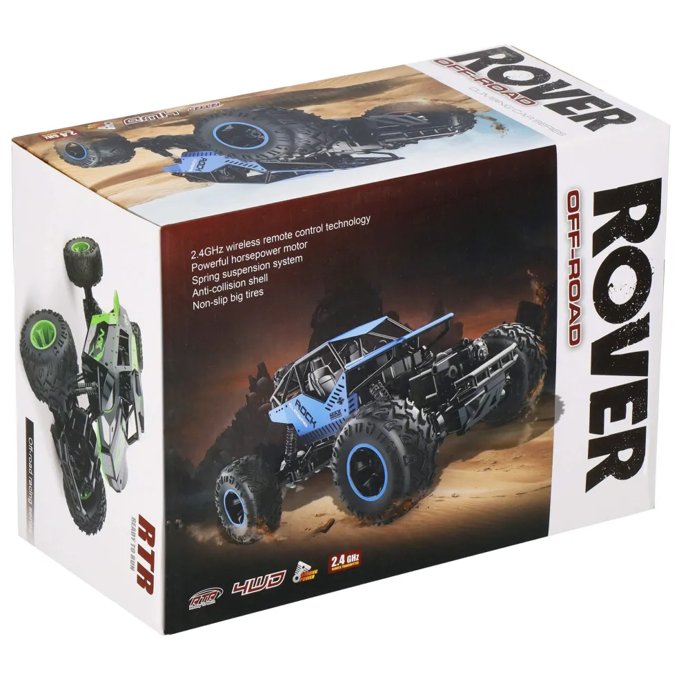 Terénne auto na diaľkové ovládanie s pohonom 4x4 a výkonným motorom zvládne jazdu v akomkoľvek teréne. Má pružinové odpruženie kolies, veľké protišmykové pneumatiky a odolnú karosériu proti nárazom. Ponúka dve rýchlosti, ľahké ovládanie smeru a napájanie z akumulátorovej batérie pre dlhú zábavu.