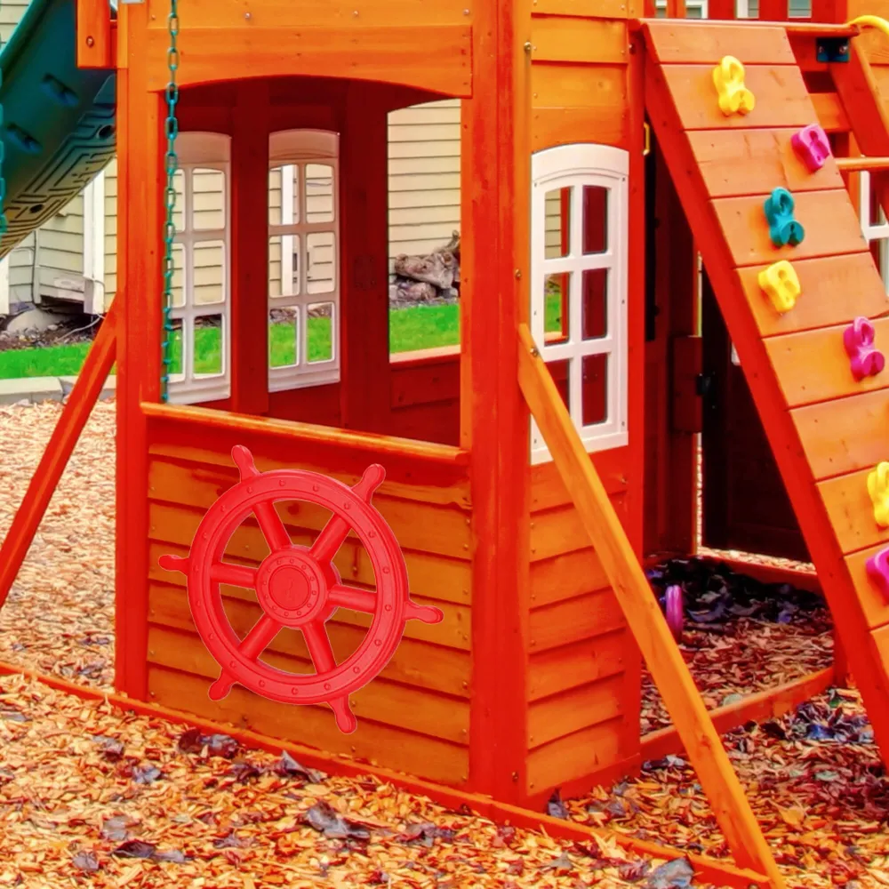 Inštalácia je jednoduchá a rýchla vďaka jednoduchej montáži , ktorú zvládne každý. Atraktívny vzhľad kormidla zaujme na prvý pohľad a dodá každému detskému ihrisku alebo domčeku originálnu námornú atmosféru. Tento prvok podporuje detskú kreativitu, fantáziu a rozvíja motorické zručnosti pri hre.