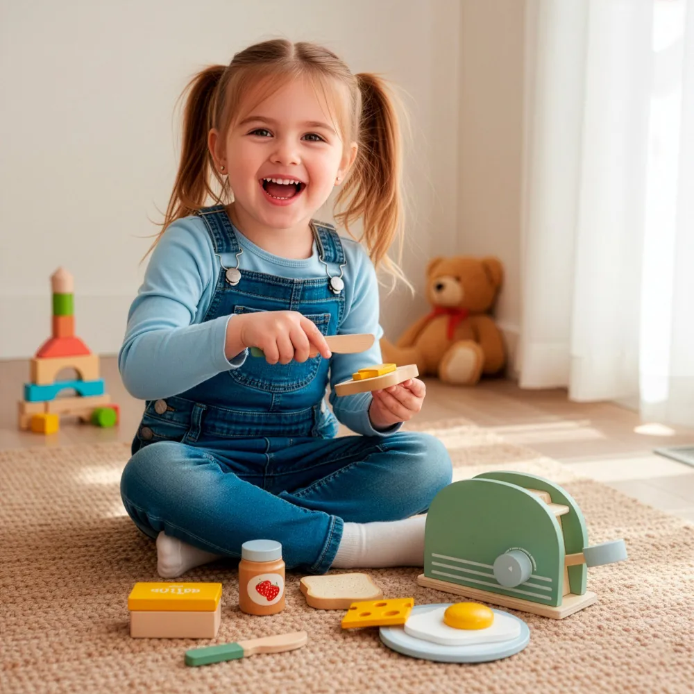 Súčasťou sady sú farebné doplnky ako chlieb, maslo, syr a vajcia, ktoré umožňujú prípravu rôznych raňajkových kombinácií . Celkom 9 interaktívnych prvkov rozvíja detskú predstavivosť, jemnú motoriku a kreativitu . Hračka je ideálna pre deti od 3 rokov a skvele sa hodí do každej detskej kuchynky ako zábavný aj edukatívny prvok.