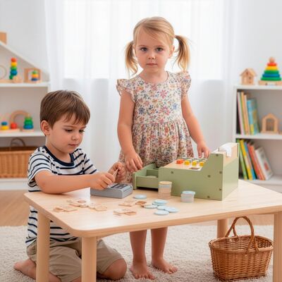 Obchodná pokladňa pre deti s platobným terminálom SPRINGOS KG0057 je originálna vzdelávacia hračka, ktorá deťom otvára dvere do sveta fantázie aj reálneho nakupovania. Vďaka kombinácii drevenej pokladne , platobného terminálu , čítačky čiarových kódov a pokladničnej tlačiarne si môžu malí predavači vyskúšať rôzne role a situácie, ktoré dobre poznajú z bežných obchodov. Nechýbajú ani bankovky , mince , platobná karta či zľavové cedule , takže hra je maximálne realistická a zábavná.