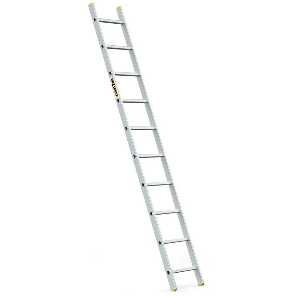 Hliníkový rebrík 1x10 priečok jednodielny DRABEST DP-10 PRO je praktický a spoľahlivý pomocník pre každodenné práce vo výškach. Vďaka svojej jednodielnej konštrukcii je vysoko stabilný a ľahko použiteľný ako prístavný alebo oporný rebrík . Jeho ľahkosť a odolnosť oceníte najmä pri jednoduchej manipulácii. Či už ho využívate v domácnosti, na záhrade alebo pri profesionálnych prácach. S dĺžkou 10 priečok poskytuje dostatočnú výšku pre širokú škálu úloh.