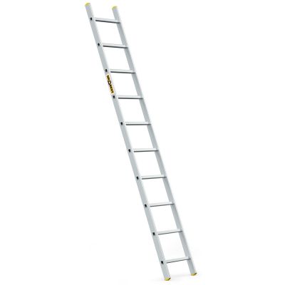 Profesionálny prístavný (oporný) rebrík ponúka skvelú manipuláciu a ľahké prenášanie. 1x10 priečok, dĺžka 2,71 m, max. pracovná výška 3,72 m, hmotnosť 4,10 kg, nosnosť 150 kg. Certifikácia TÜV Rheinland, EN 131 pre profi použitie.