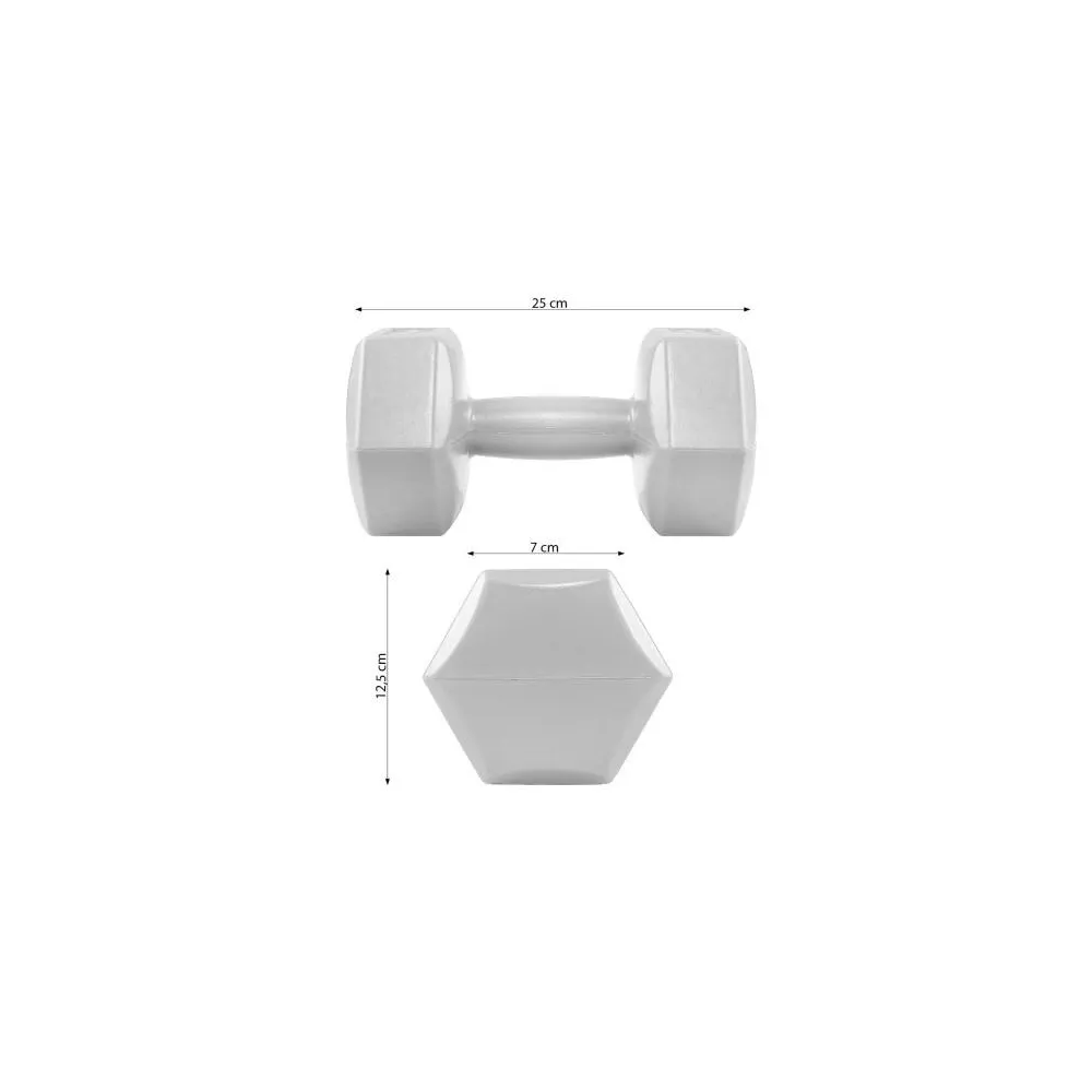Šesťhranný tvar činiek zaručuje perfektnú stabilitu pri odložení. Špeciálne zvolená veľkosť rukoväte poskytuje bezpečné uchopenie a pohodlné cvičenie. Telo činky je vyrobené z pevného plastového materiálu so zhutnenou cementovou výplňou. Pri nechcenom páde účinne absorbuje náraz , čím chráni podlahu aj samu činku pred poškodením.