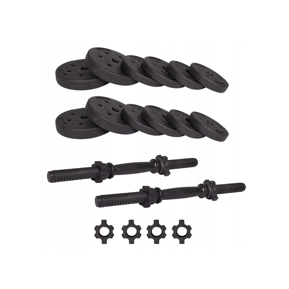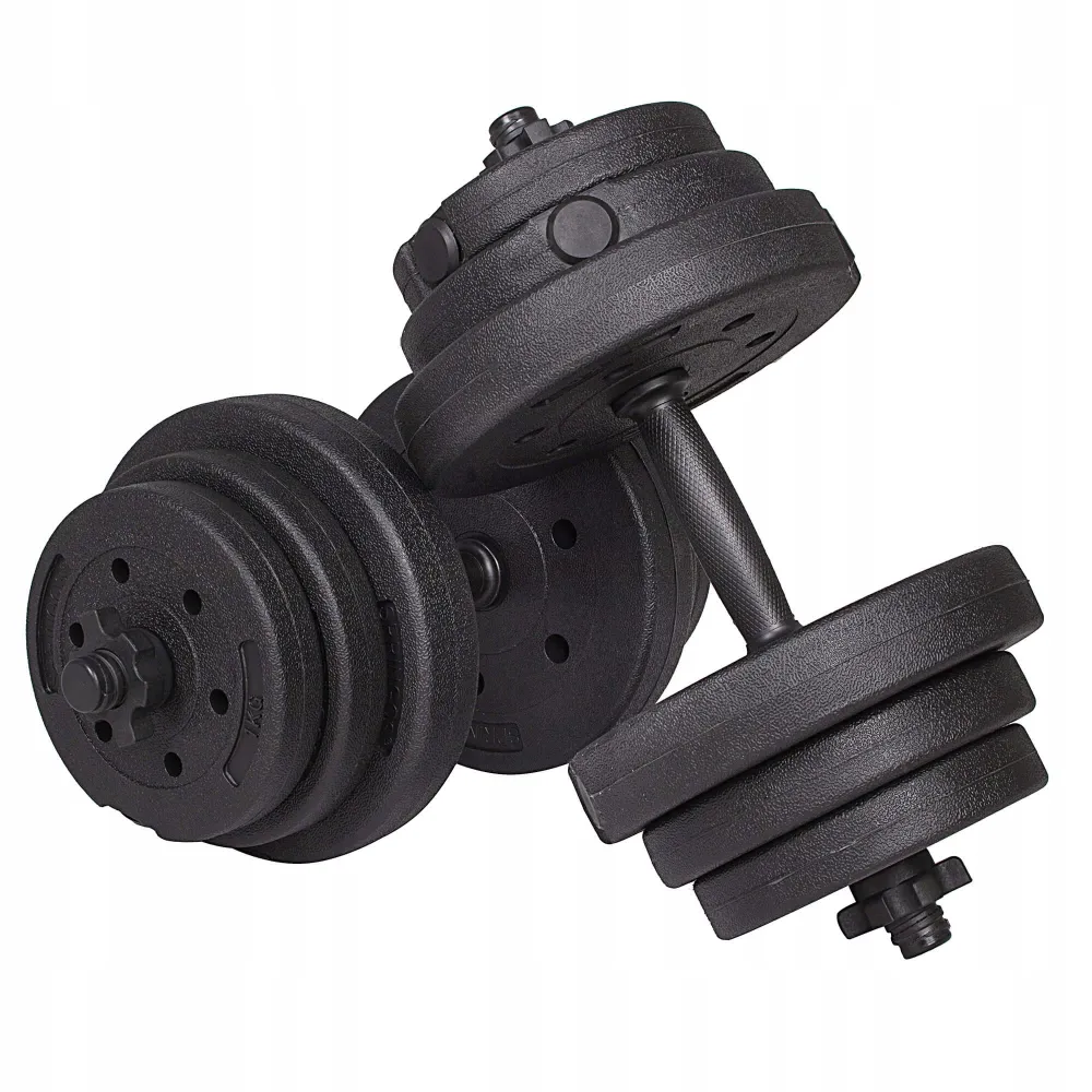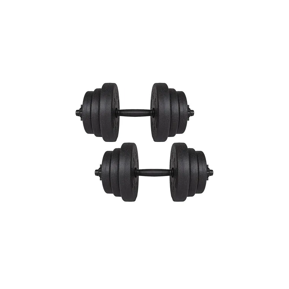 Nakladací činkový set SPRINGOS COMPOSITE 2x10 kg s pestrou skladbou kotúčov pre individuálne prispôsobenie hmotnosti podľa aktuálnych dispozícií a typu cvičenia.