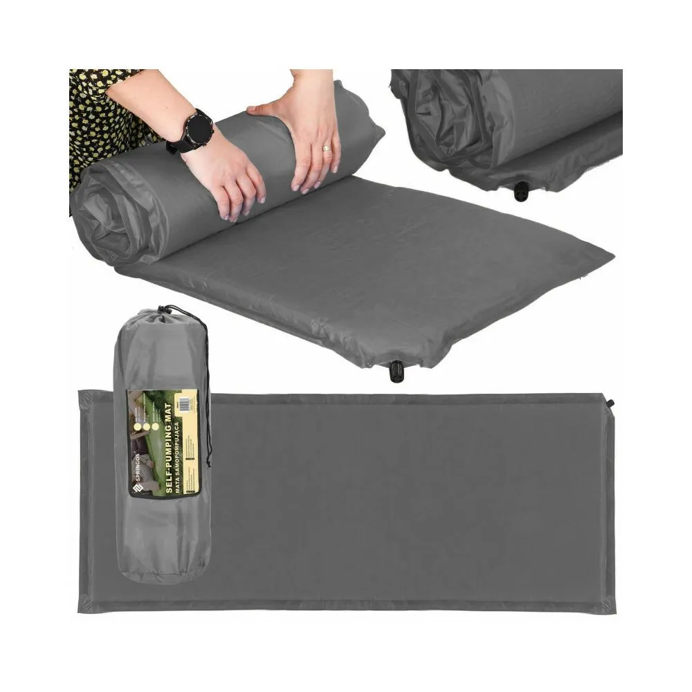 Samonafukovacia kempingová podložka s rozmermi 180x50x2,5 cm . Špeciálna polyuretánová vrstva. Jednoduché používanie, nenáročná údržba. Nízka hmotnosť, vysoký komfort. Elastické popruhy, šnúrky umožňujúce zavesenie. Skvelá alternatíva k matracu počas kempovania, výletu do hôr alebo na pláž.