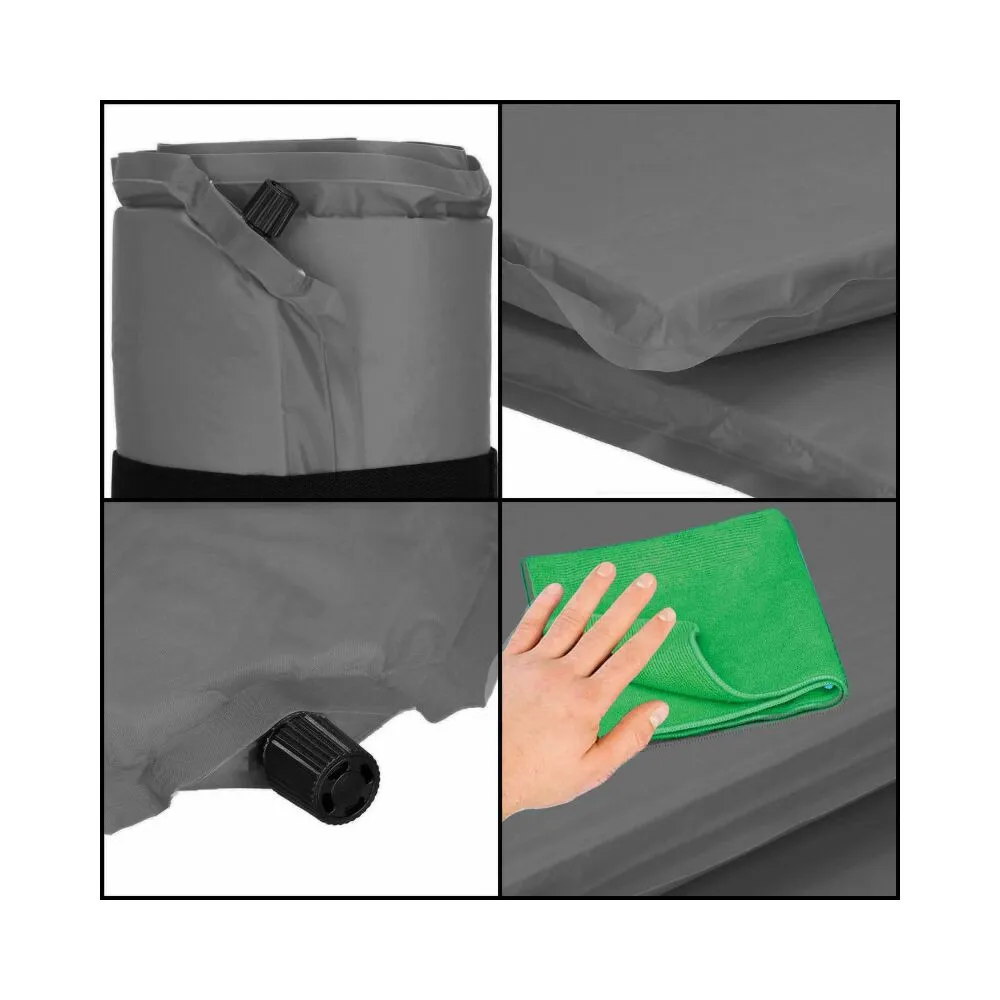 Pokiaľ sa chystáte na turistický výlet, nezabudnite si do inventára dať samonafukovaciu karimatku. Kempingová podložka je ľahká (len 1,5 kg), šikovná a vydrží zaťaženie až 110 kg . Turistický matrac sa bude hodiť pri každom kempovaní , výlete do hôr alebo pri večeri strávenom na pláži. Samonafukovacia karimatka obsahuje špeciálnu , pružnú polyuretánovú penu , ktorá po otvorení uzáveru automaticky nasáva vzduch. Jednoduché používanie, nenáročná údržba .