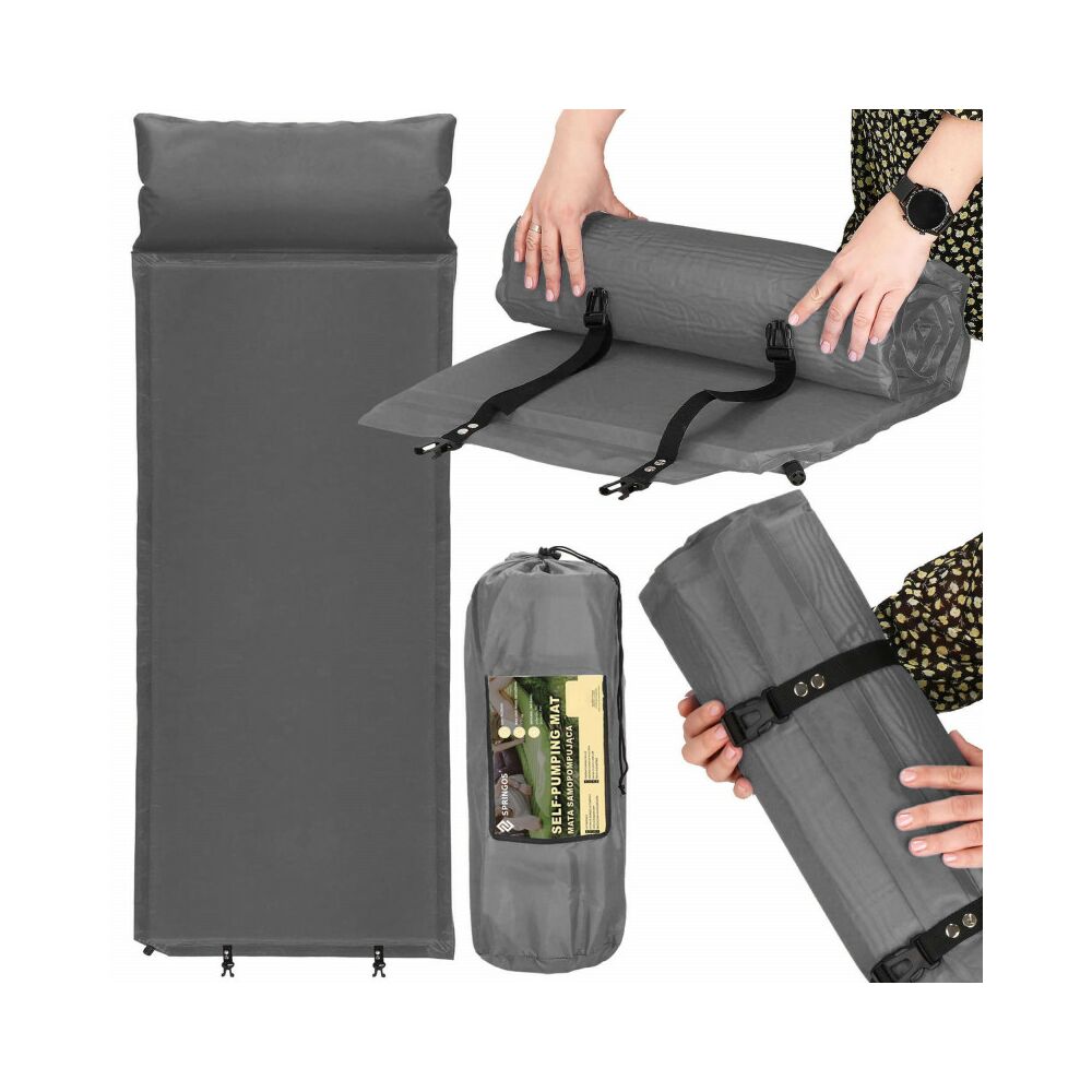 Samonafukovacia karimatka s vankúšom 186x53x2, 5 cm, šedá SPRINGOS ROVER