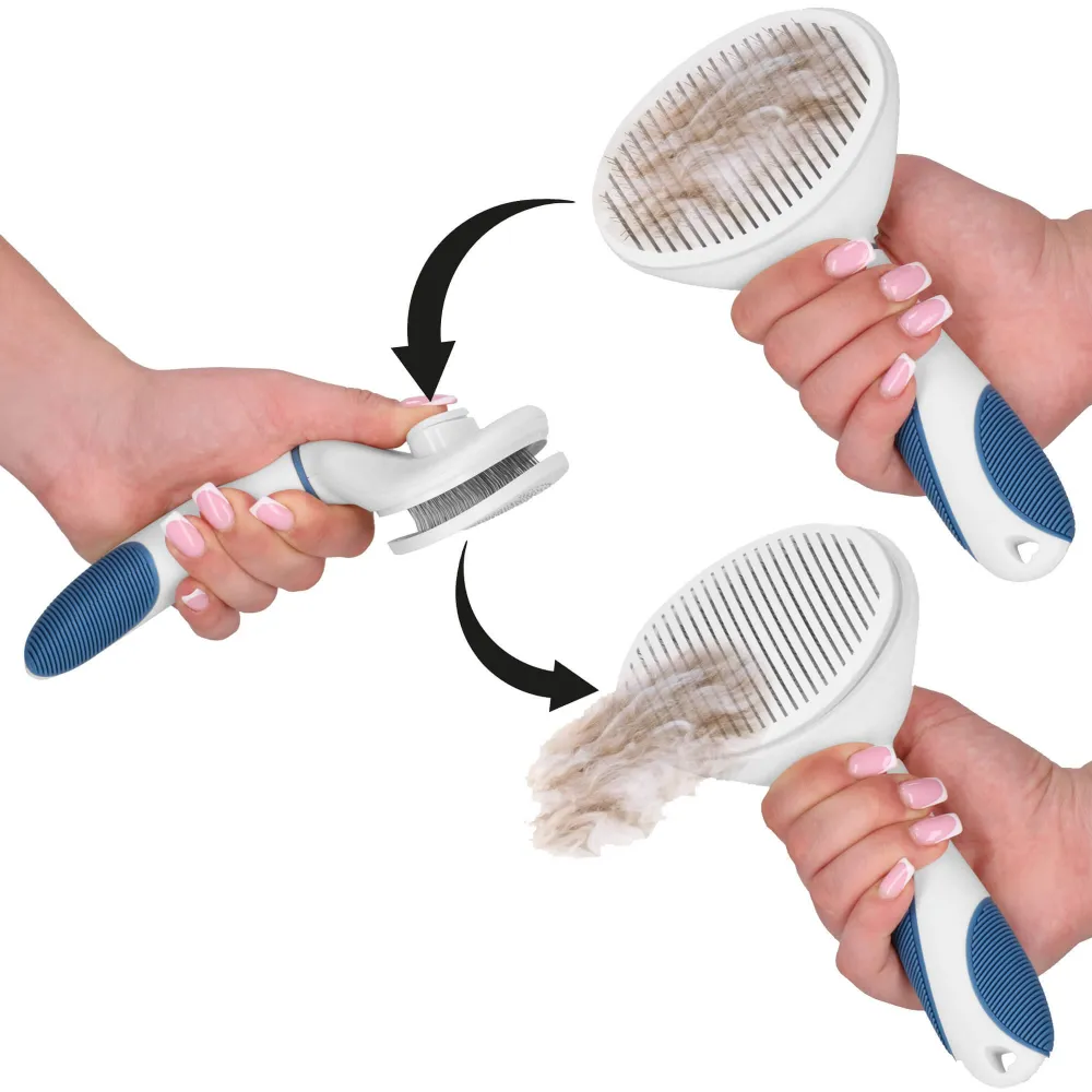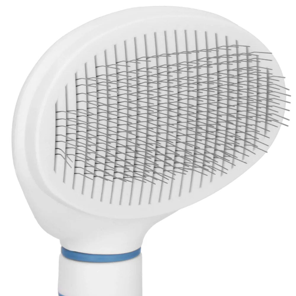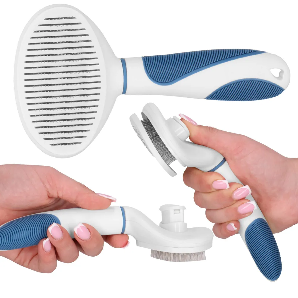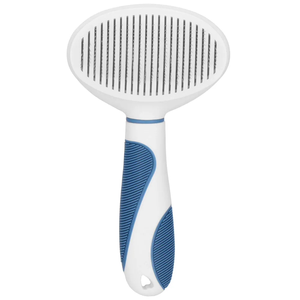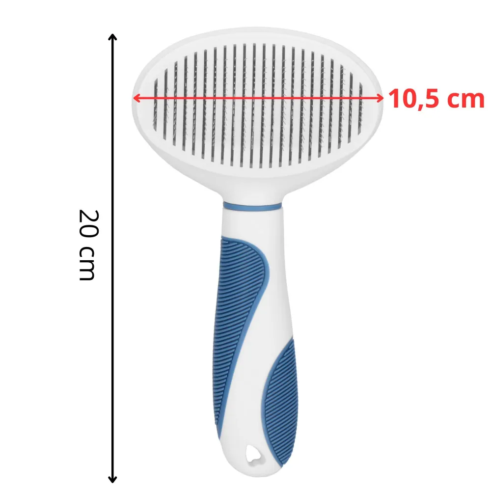 Praktická samočistiaca kefa pre ľahkú starostlivosť o srsť vášho maznáčika. Jemné kovové ihličky z nerezovej ocele účinne rozčesávajú uzly, odstraňujú nečistoty a uvoľnené chlpy, zároveň poskytujú príjemnú masáž. Ergonomická rukoväť zaisťuje pohodlné držanie pri vyčesávaní. Vďaka šikovnému samočistiacemu mechanizmu stačí stlačiť tlačidlo a chlpy jednoducho odstránite. Ideálna pomôcka na pravidelnú údržbu srsti psov i mačiek.
